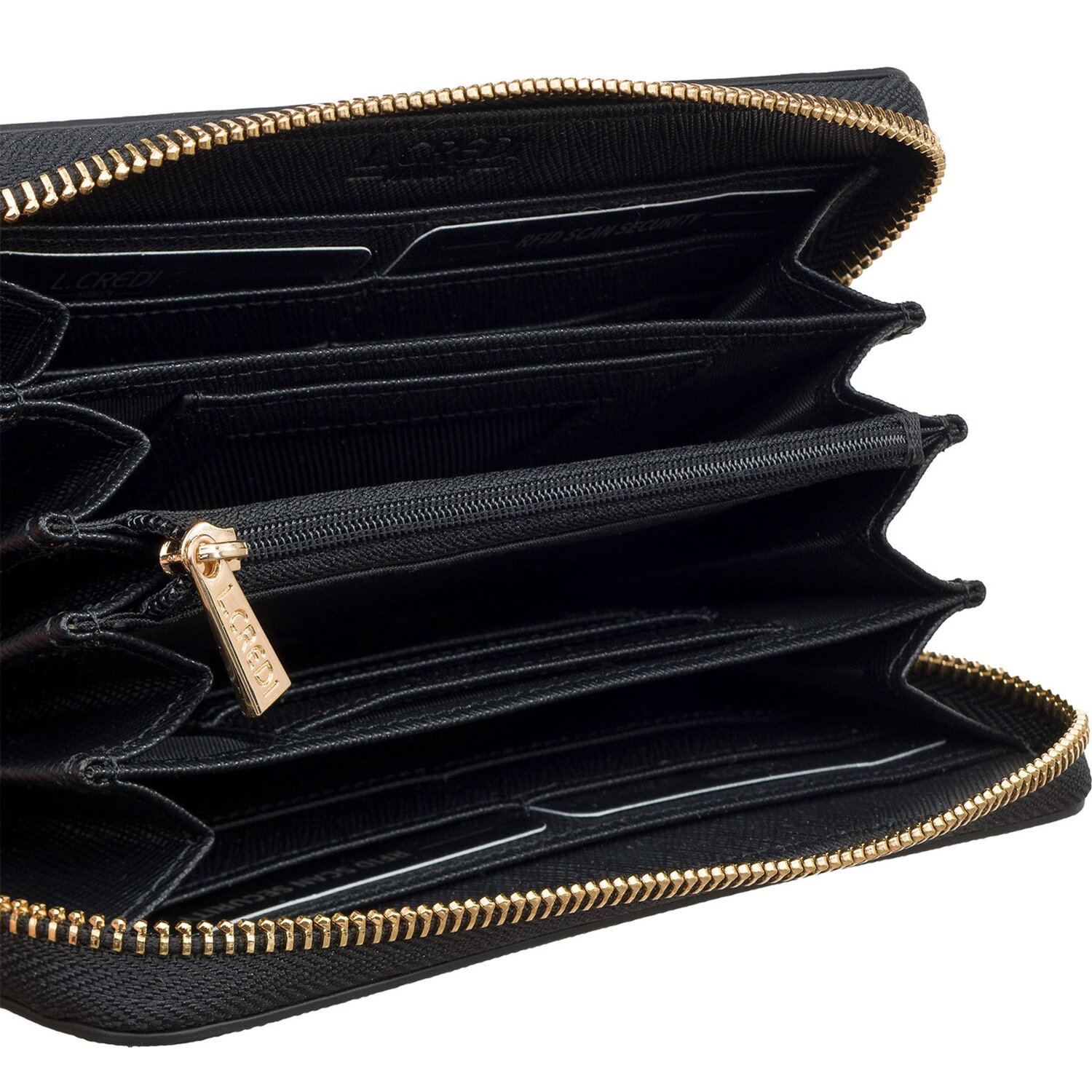 L.CREDI setzt mit der chicen Damengeldbörse aus der Poema-Serie neue Akzente in Sachen Stilsicherheit und Funktionalität. Masterfully designed ergänzt dieses Accessoire jeden Look und bietet durch die clevere Aufteilung von zehn Kreditkartenfächern, vier Scheinfächern sowie je einem Münz-, Steck- und Ausweisfach ausreichend Platz für alle Essentials. Geschmackvoll abgerundet wird das Design durch den Reißverschluss. Gearbeitet aus robustem Polyurethan, trotzt die Börse jedem Alltag und ist dennoch angenehm leicht. Als besonderes Highlight verfügt sie über einen integrierten RFID-Schutz, der Ihre Karten vor ungewünschtem Zugriff schützt. Fühlen Sie echte Sicherheit und Exklusivität mit L.CREDI's Poema Geldbörse.