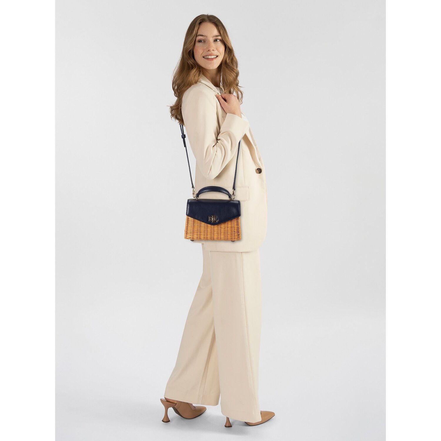 Luxus trifft auf Funktionalität in der Farrah Handtasche von Lauren Ralph Lauren. Hergestellt aus feinstem Holz, präsentiert sich dieses Schmuckstück mit einer Detailschönheit, die ihresgleichen sucht. Ein praktischer Drehverschluss sichert Ihre Habseligkeiten, während im Inneren Kreditkartenfächer für optimale Organisation sorgen. Highlight dieses Modells sind die edlen Bodennägel, die sowohl Designelement als auch schützendes Merkmal sind. Der Riemen ist abnehmbar und in der Länge verstellbar, was verschiedene Tragemöglichkeiten ermöglicht - wählen Sie zwischen dem kurzen Hauptgriff oder dem Umhängeriemen. Mit der Farrah Handtasche ist ein stilvoller Auftritt garantiert.
