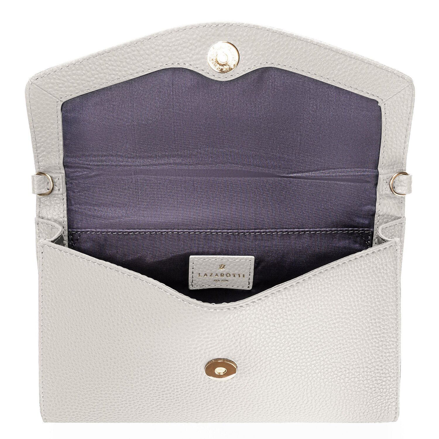 Diese Clutch Tasche von Lazarotti vereint Funktion und Design perfekt. Im Hauptfach sorgt ein Steckfach für gute Übersichtlichkeit, außen ein Steckfach für zusätzlichen Stauraum. Längenverstell- und abnehmbarer Schulterriemen für guten Tragekomfort. Aus genarbtem Leder, stylisch.
