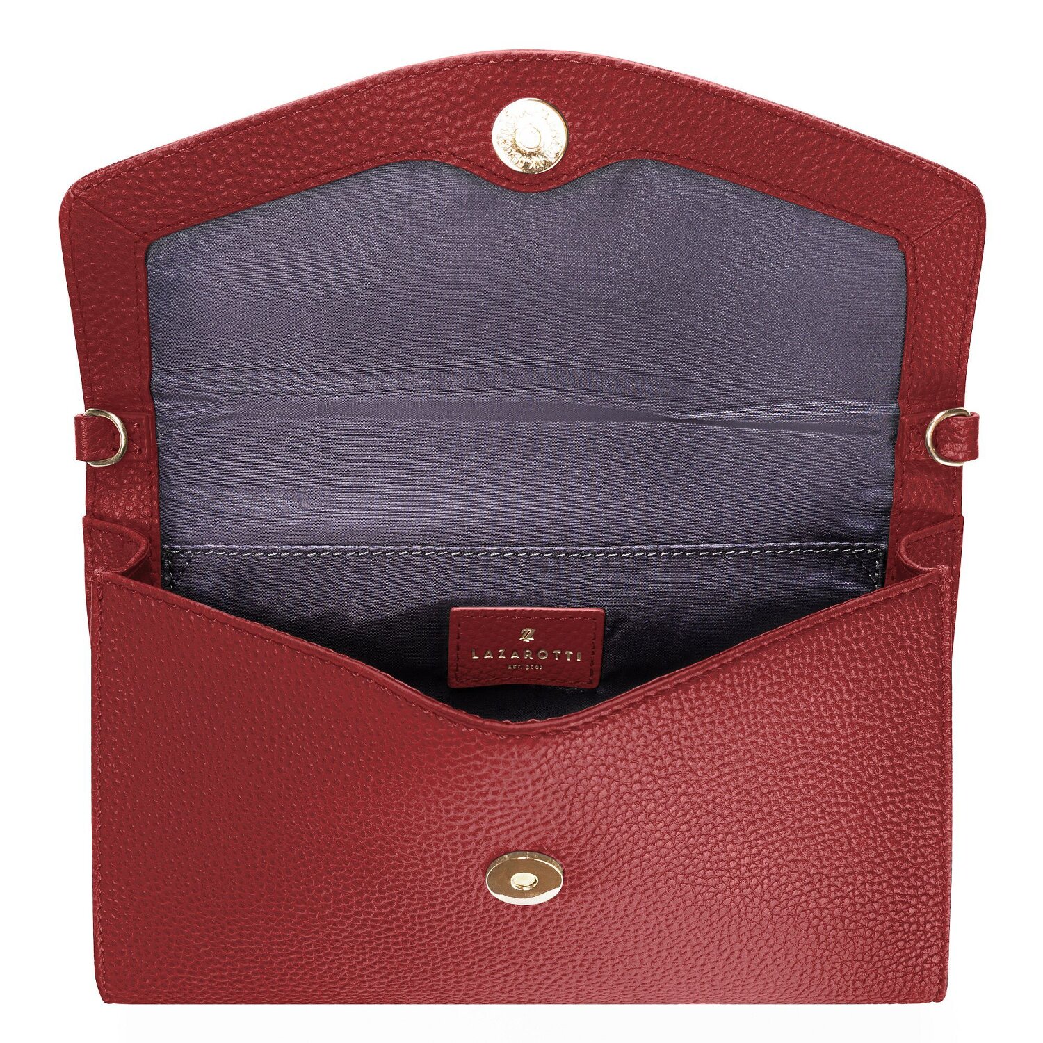 Diese Clutch Tasche von Lazarotti vereint Funktion und Design perfekt. Im Hauptfach sorgt ein Steckfach für gute Übersichtlichkeit, außen ein Steckfach für zusätzlichen Stauraum. Längenverstell- und abnehmbarer Schulterriemen für guten Tragekomfort. Aus genarbtem Leder, stylisch.