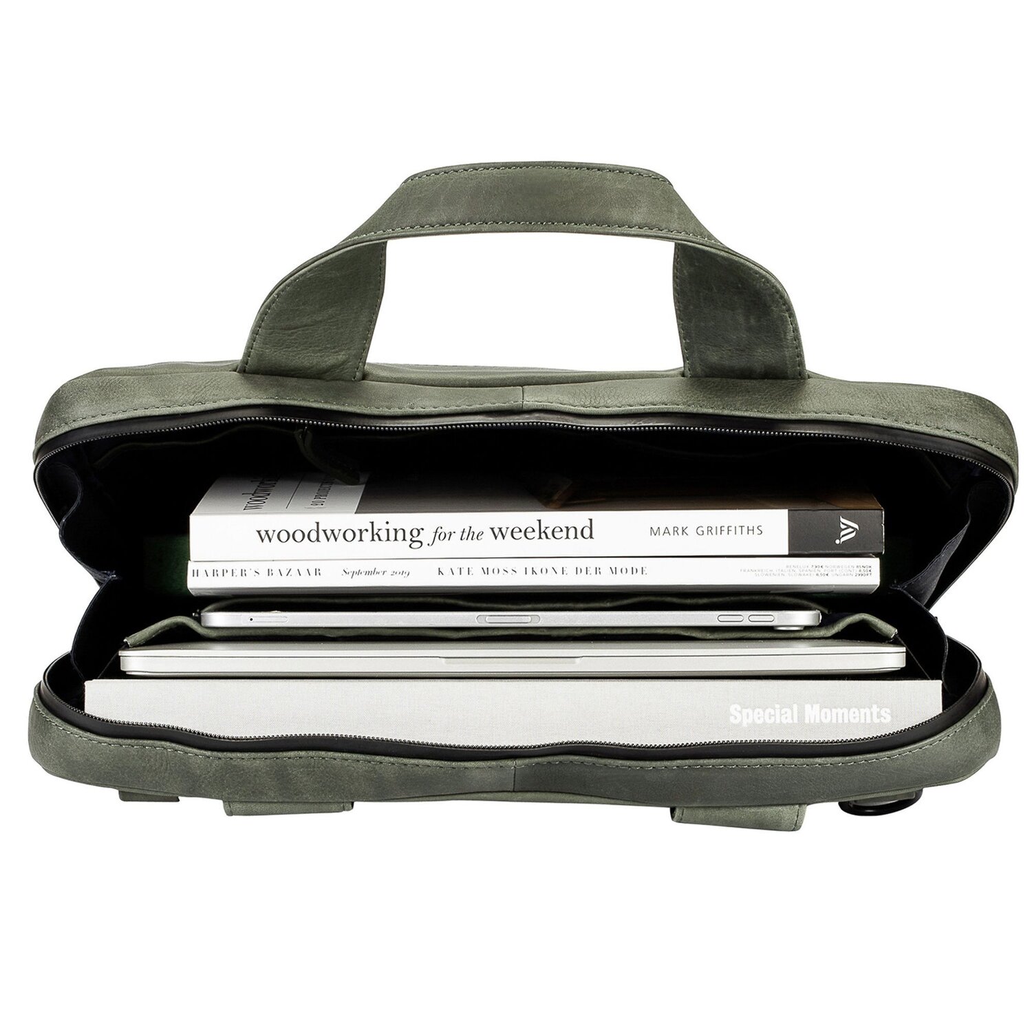 Den Haag Aktentasche Leder 38 cm Laptopfach Variante oliv