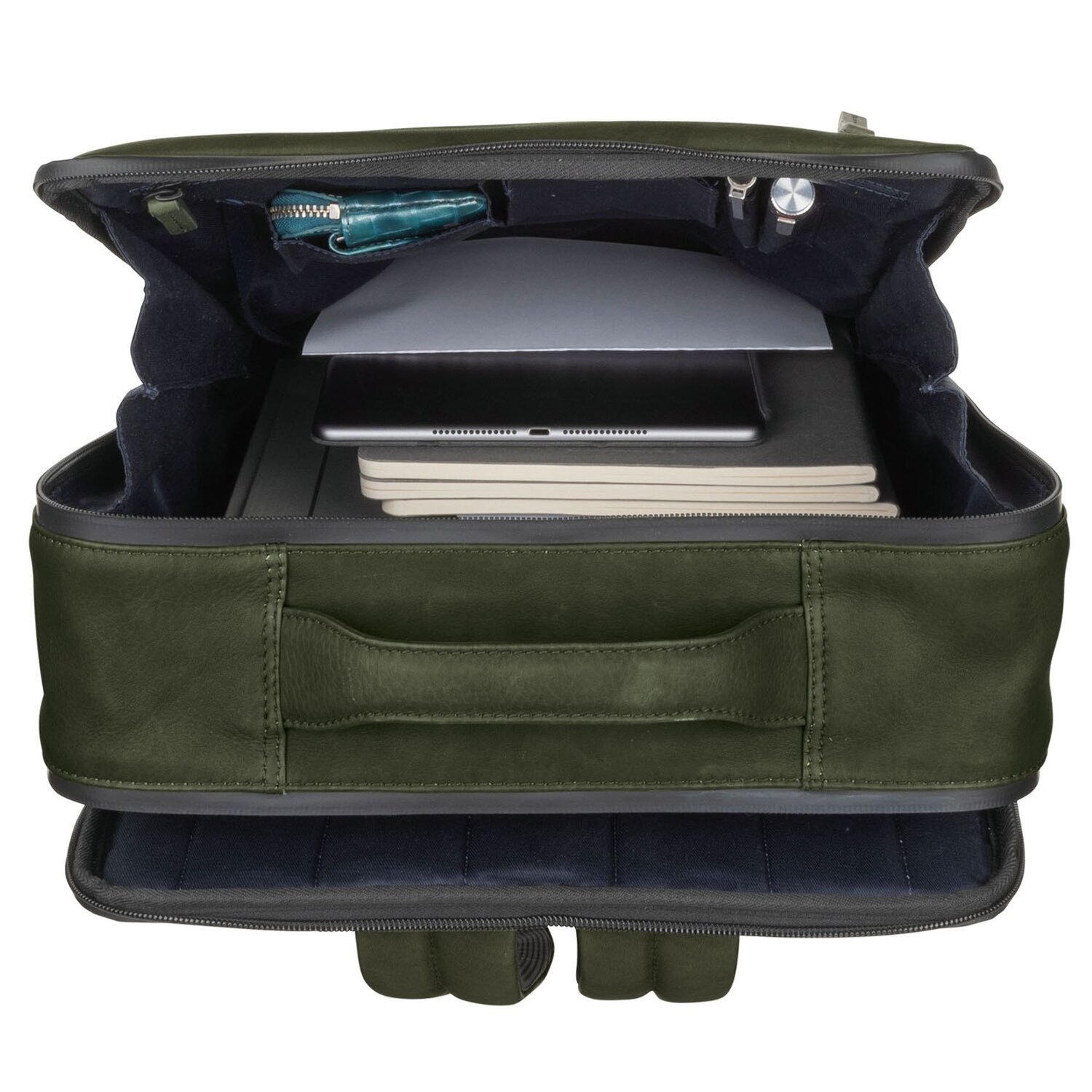 Edler Rucksack von Leonhard Heyden aus hochwertigem, robustem Leder. Mit zwei großen Hauptfächern, gepolstertem Laptop- und Tabletfach sowie weiteren Nebenfächern für Handy, Wertsachen und anderes.