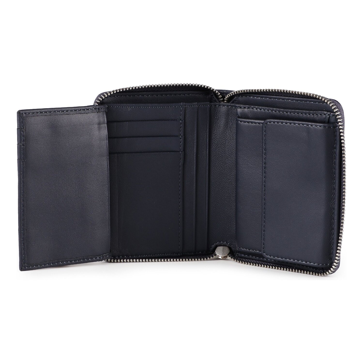 Erleben Sie den Luxus individueller Ordnung mit der Conny Harris Damengeldbörse von Liebeskind. In anmutig querformatigem Design bietet diese Geldbörse sechs Kreditkartenfächer, sechs Steckfächer, ein Scheinfach und ein Münzfach. Ein versorgerter Reißverschluss verspricht sicheren Halt Ihrer Wertsachen. Das Material? Erlesenes Leder mit butterweicher Haptik und robustem Charme. Optimal strukturiert und von unaufdringlicher Eleganz sorgt diese Geldbörse für stilvolle Alltagsmomente. Zögern Sie nicht! Gewähren Sie Ihrem Alltagsbegleiter ein Upgrade und erleben Sie das Gefühl maßgefertigter Eleganz.