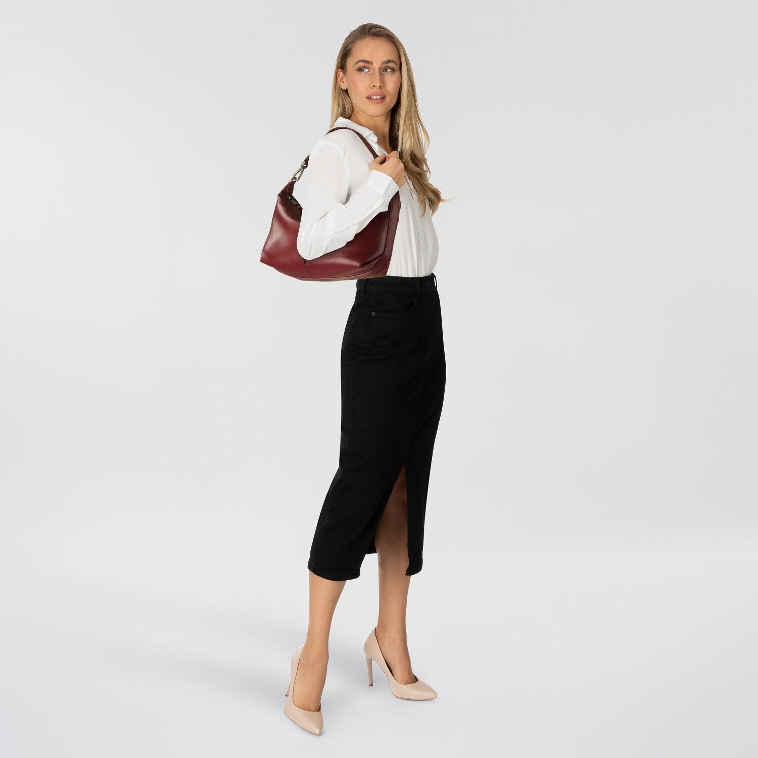 Maia Schultertasche Leder 36 cm Variante pomegranate