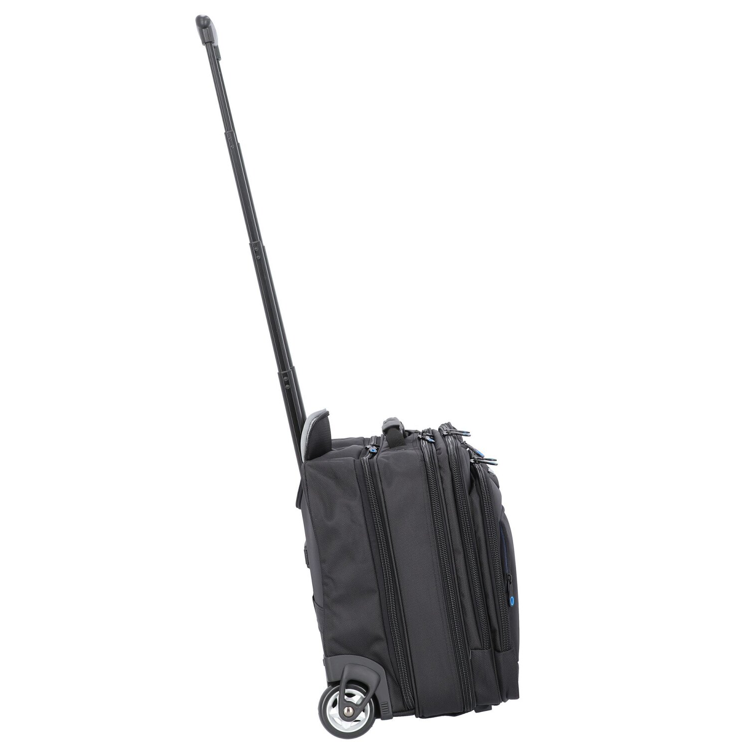 - Ausstattung: Tasche(n) innen, Tasche(n) außen, Reißverschlussfach, Platz für großen Aktenordner, Netzfach, Handyfach, auf Trolley steckbar, arretierbarer Griff