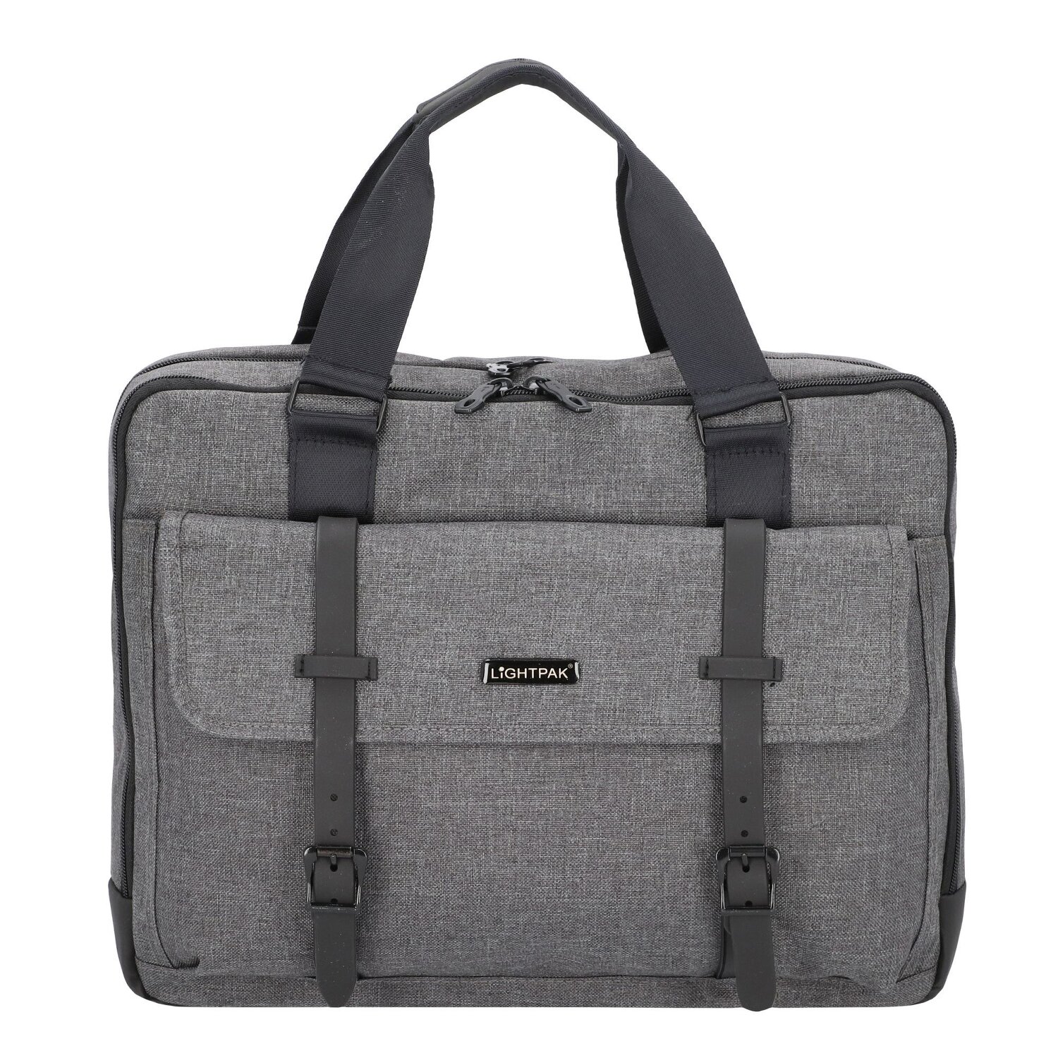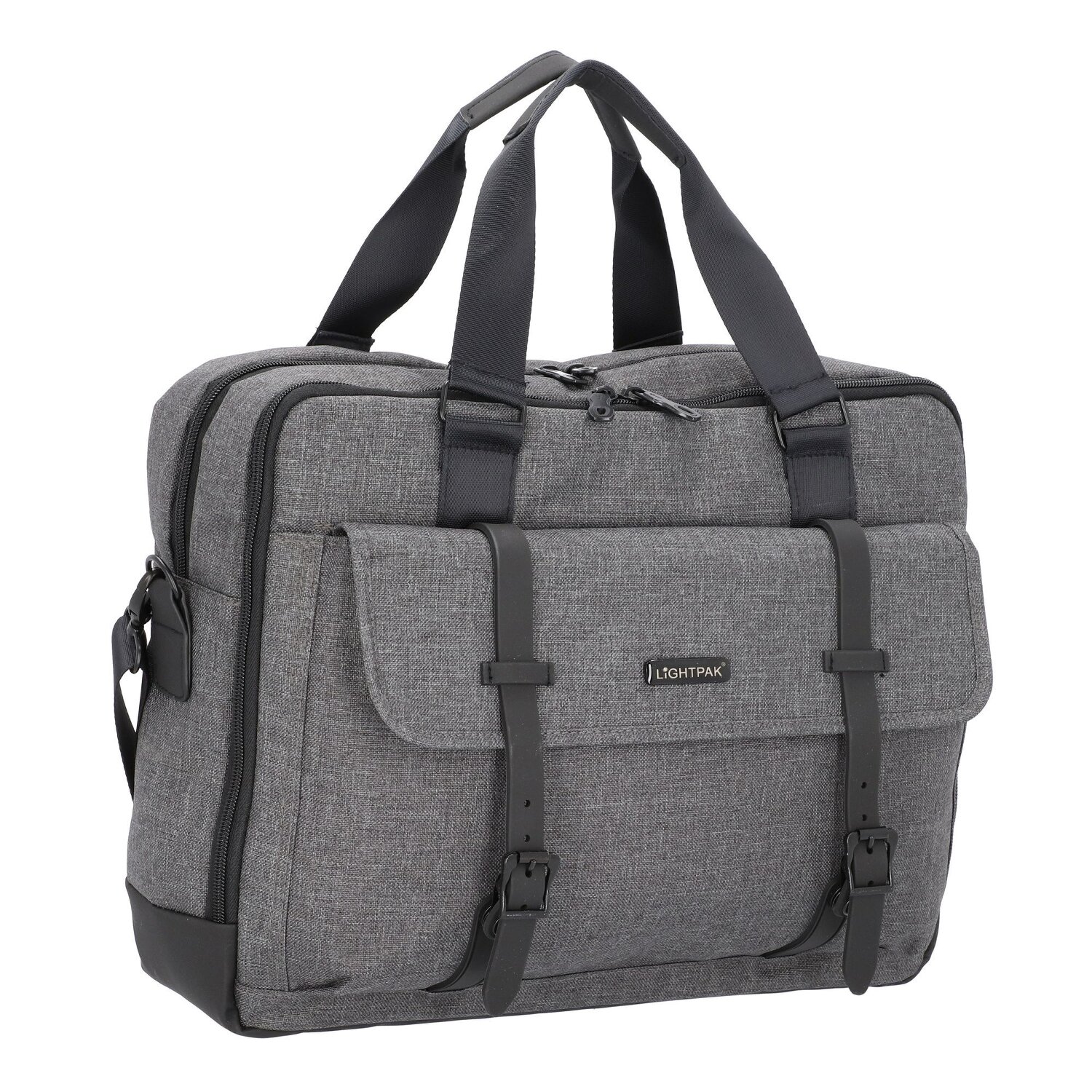Geräumige Aktentasche von Lightpak mit abnehmbarem und verstellbarem Schulterriemen. Die Tasche verfügt über zwei Hauptfächer, ein gepolstertes Laptop- und Tabletfach, sowie eine große Vortasche und weitere Fächer für Utensilien aller Art. Eine Aufstecklasche auf der Rückseite ermöglicht es, die Tasche auf den Ausziehgriff eines Trolleys zu stecken. Praktische und vielseitige Begleiter für den täglichen Gebrauch.