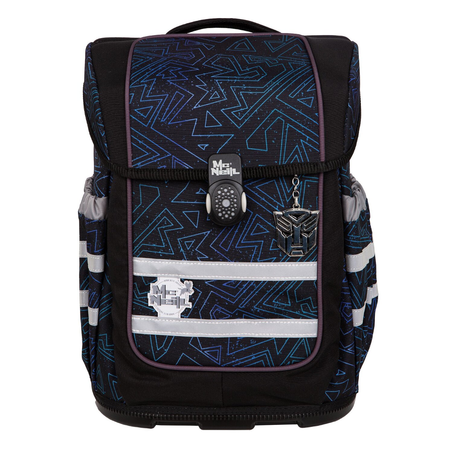 5-teiliges Schulranzen-Set von McNeill, bestehend aus Schulranzen, Sportschuhbeutel, Federmäppchen gefüllt, Schlampermäppchen sowie einem abnehmbaren/wechselbaren McAddy zum individualisieren Deines Schulranzens. Ein schöner Motiv-Anhänger ist inklusive. Top-Tragekomfort durch die atmungsaktive Rückenpolsterung, höhenverstellbare Gurte sowie Becken- und Brustgurt. Der Ranzen hat ein stylisches, reflektierendes Magnetschloss, welches leichtgängig wie von selbst schließt. Geräumige offene Seitentaschen können für die Trinkflasche oder sonstige Mitbringsel für die Schule verwendet werden. Schulranzen Außenmaß: 29 cm x 22 cm x 38,5 cm / Leergewicht: ca. 1.150 g / Volumen: ca. 20 l