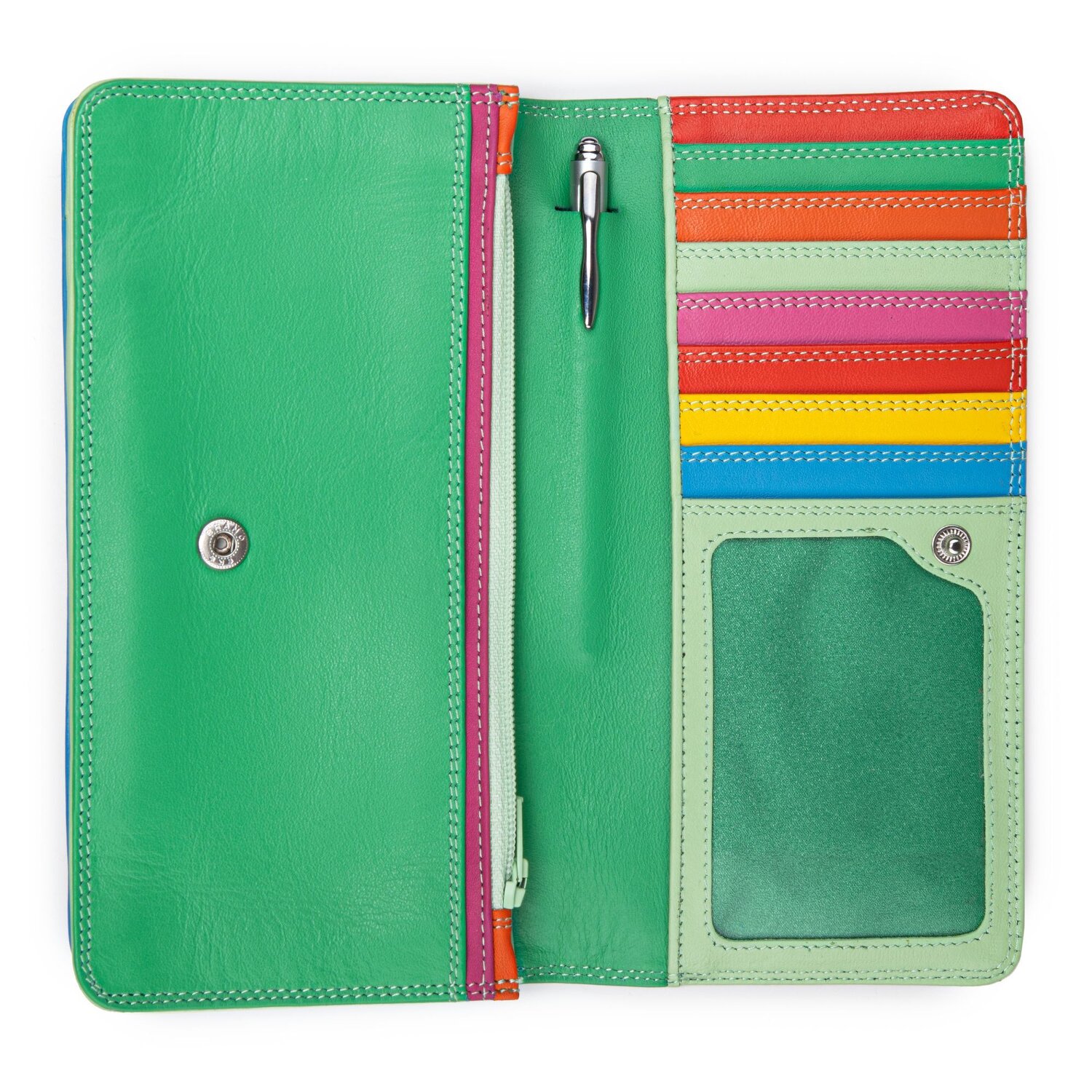 mywalit Geldbörse im bunten, einzigartigen Design. Viele verschiedene Farbvarianten machen die Geldbörse zum Hingucker. Schließt mit Druckknopf. Mit beiliegenden Stift. Reißverschlussfach auf der Rückseite.