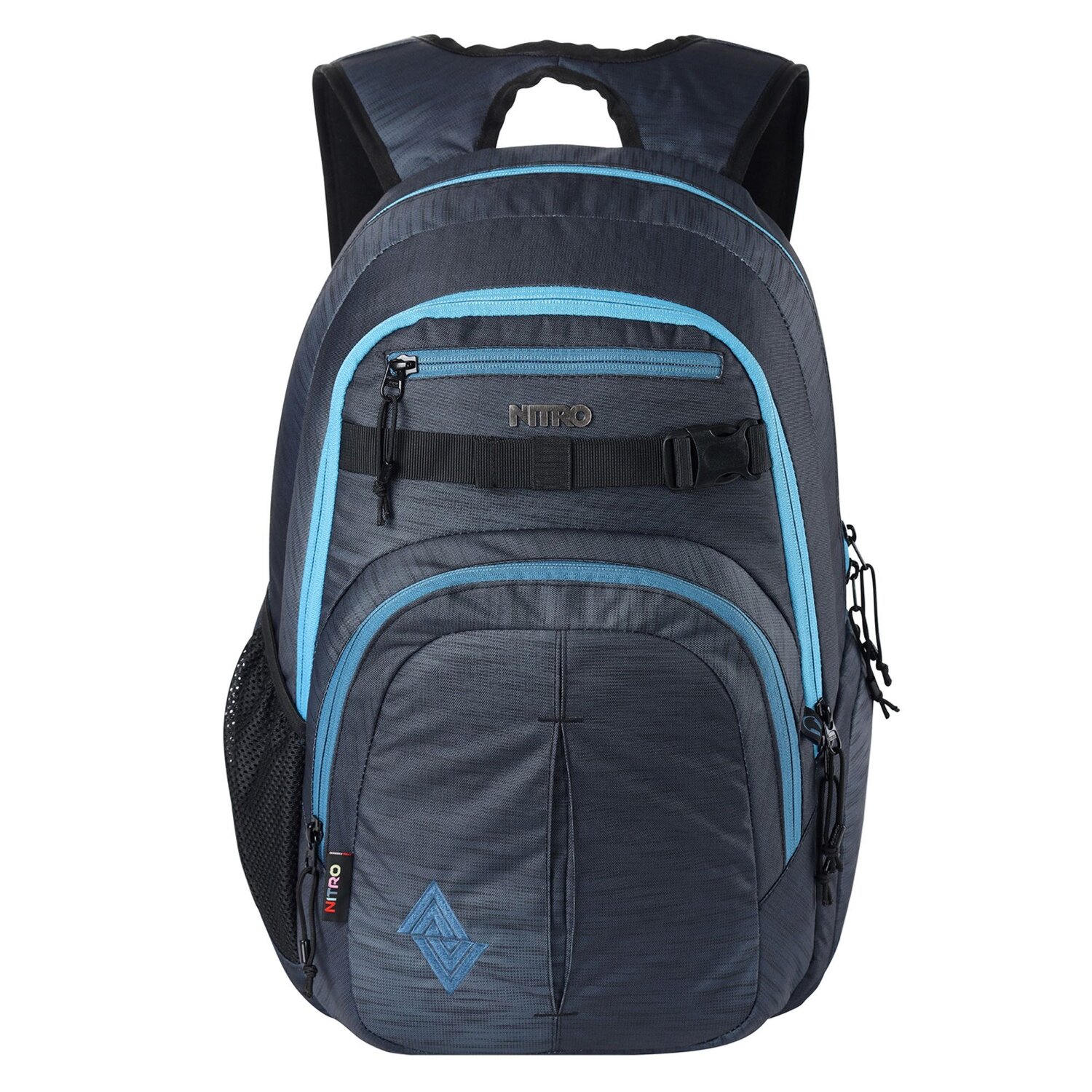 Der große und praktische Rucksack von Nitro aus strapazierfähigem Material bietet mit seinen zahlreichen Taschen und Fächern super viel Platz und eine optimale Übersicht. Er verfügt über zwei Hauptfächer, ein separates, gepolstertes Fach mit Platz für Laptops mit Bildschirmdiagonale bis ca. 43 cm (17 Zoll), ein Fach mit Fleece-Futter für Sonnenbrillen oder Smartphone, ein Netzfach für Flaschen und eine Fronttasche mit Organizer und Kopfhörerausgang. Die gepolsterten Schultergurte und ergonomisch geformtes Rückensystem ermöglichen auch bei schwerem Gewicht ein bequemes Tragen. Der verstellbare Brustgurt sichert zusätzlich den Rucksack. Perfekter Begleiter im Alltag oder auf Reisen.