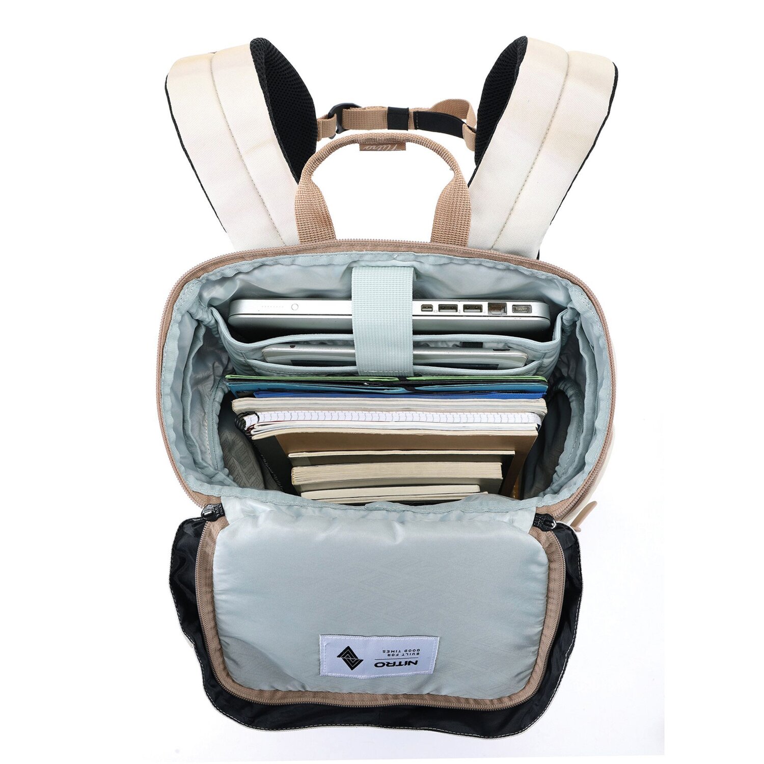 Der praktische Rucksack von Nitro verfügt über ein geräumiges Hauptfach, ein gepolstertes Fach mit Platz für Laptops mit Bildschirmdiagonale bis ca. 38 cm (15 Zoll), ein gepolstertes Tabletfach, eine Fronttasche mit Organizer, sowie weitere, zahlreiche Fächer und Taschen und bietet somit viel Stauraum, um alles zu verwahren, was man im Alltag braucht. Die gepolsterten Schultergurte und ergonomisch geformtes Rückensystem ermöglichen auch bei schwerem Gewicht ein bequemes Tragen. Der verstellbare Brustgurt sichert zusätzlich den Rucksack. Der ideale Begleiter für fast jede Gelegenheit.
