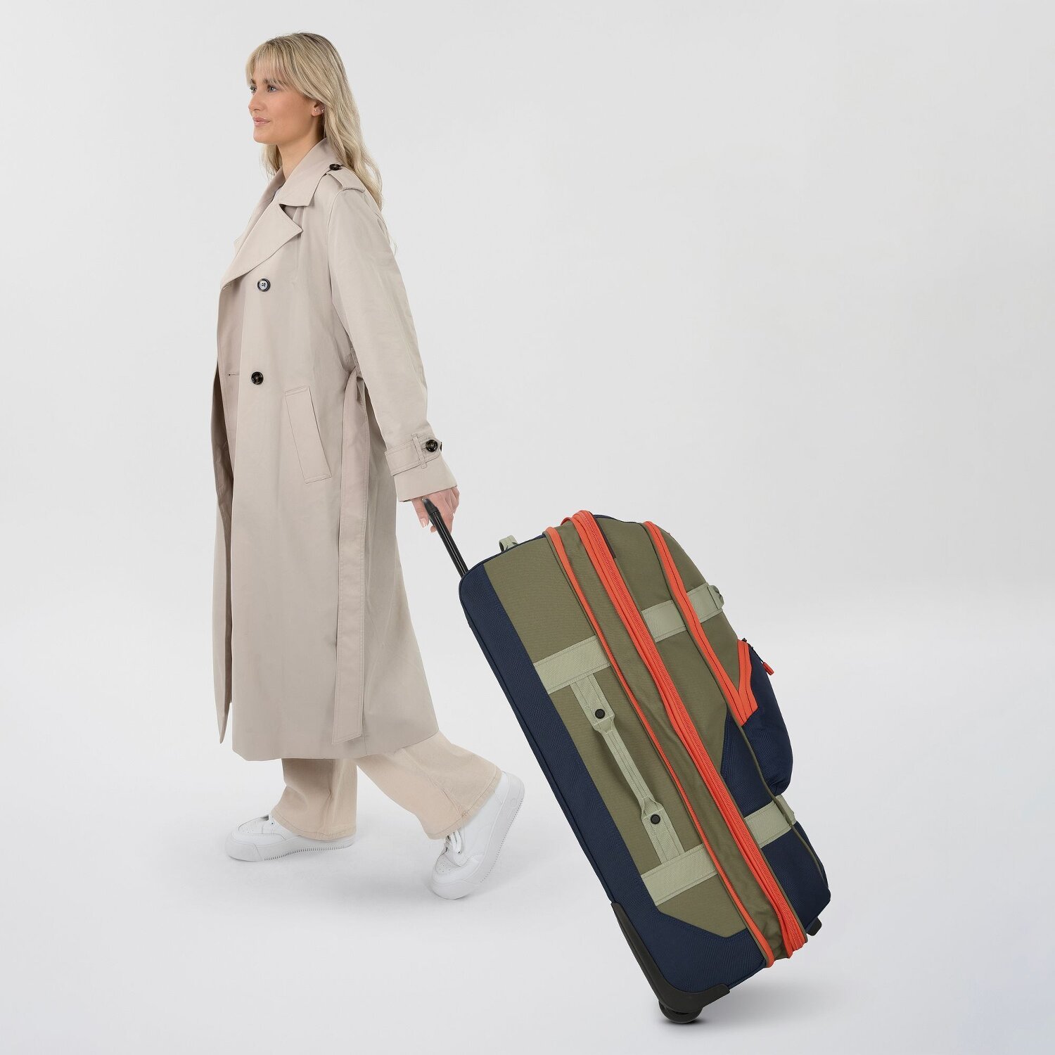 - Ausstattung: Wäschefach, Tasche(n) außen, Reißverschlussfach, Kreuzpackgurt, Dehnfalte, arretierbarer Griff