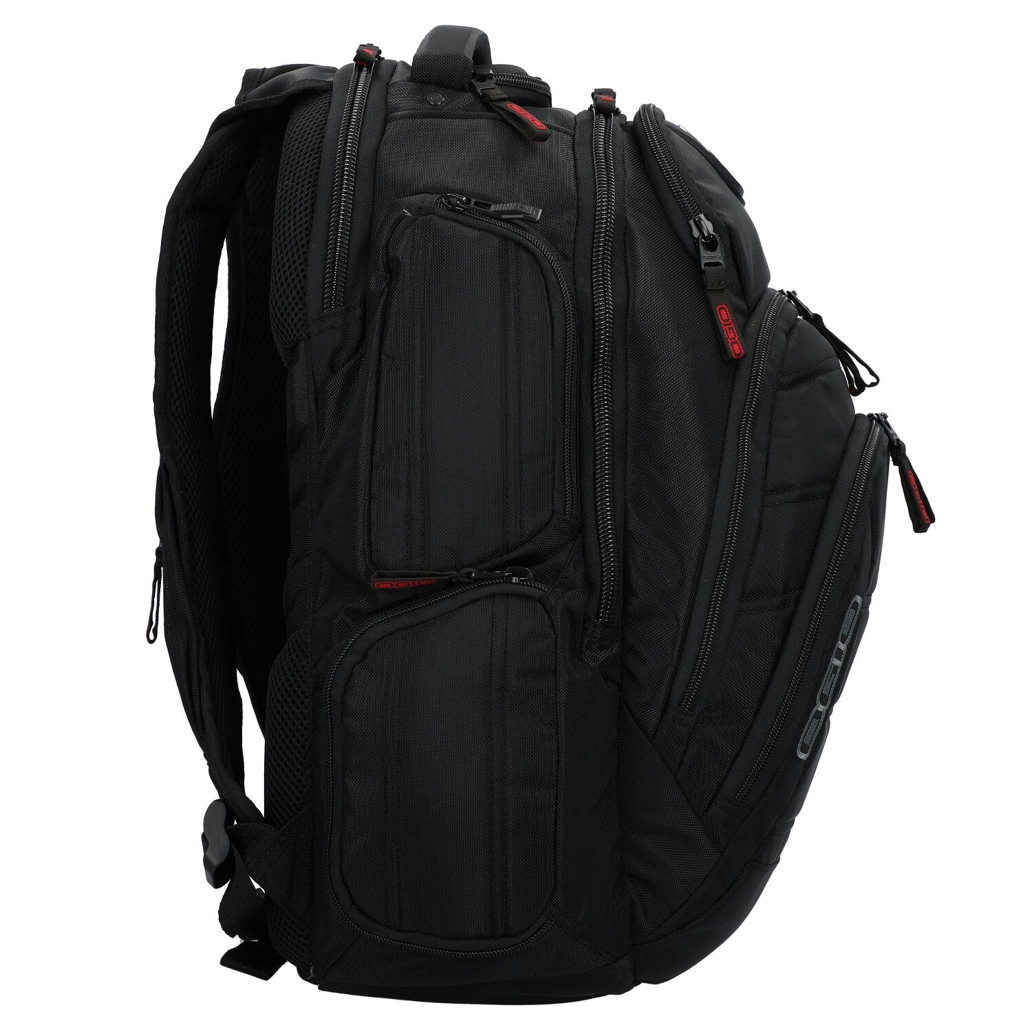- Ausstattung: Tasche(n) innen, Tasche(n) außen, Rückenpolsterung, Reißverschlussfach, Netzfach, Handyfach