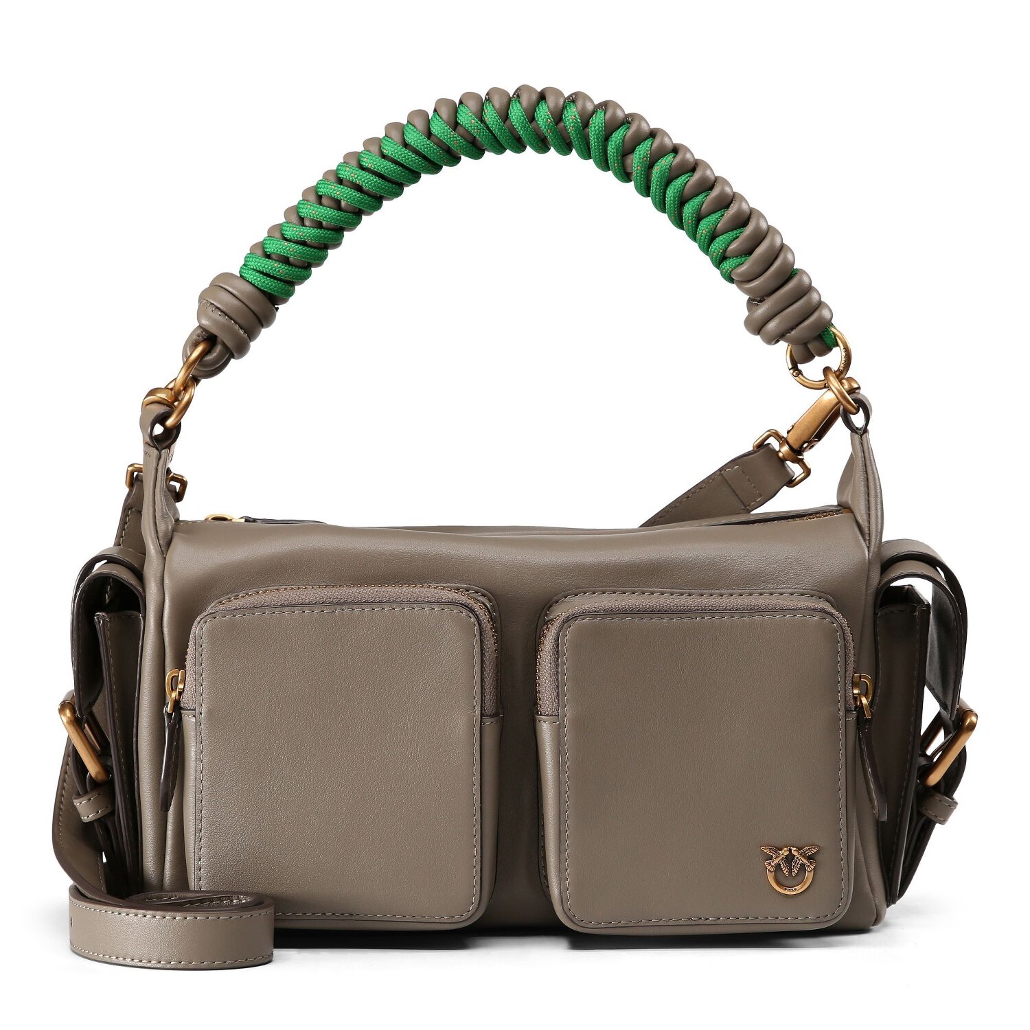 Die PINKO Schultertasche aus der Serie Cargo besticht durch ihr anspruchsvolles Design und ihre Praktikabilität. Aus hochwertigem Leder gefertigt, enthält sie diverse Reißverschlussfächer und außen angelegte Taschen für zusätzlichen Stauraum. Die attraktive Lederkonstruktion trägt zu ihrer edlen Optik bei, während der leicht zugängliche Reißverschluss den Komfort und die Benutzerfreundlichkeit erhöht. Tragbarkeit wird durch den langen Hauptträger und den einstellbaren abnehmbaren Umhängeriemen flexibel gestaltet. Für Frauen, die Wert auf Stil und Funktionalität legen, ist diese Tasche der perfekte Begleiter für den Alltag oder besondere Anlässe. Investieren Sie in dieses modische Accessoire und erleben Sie die Fusion von Eleganz und Praktikabilität.