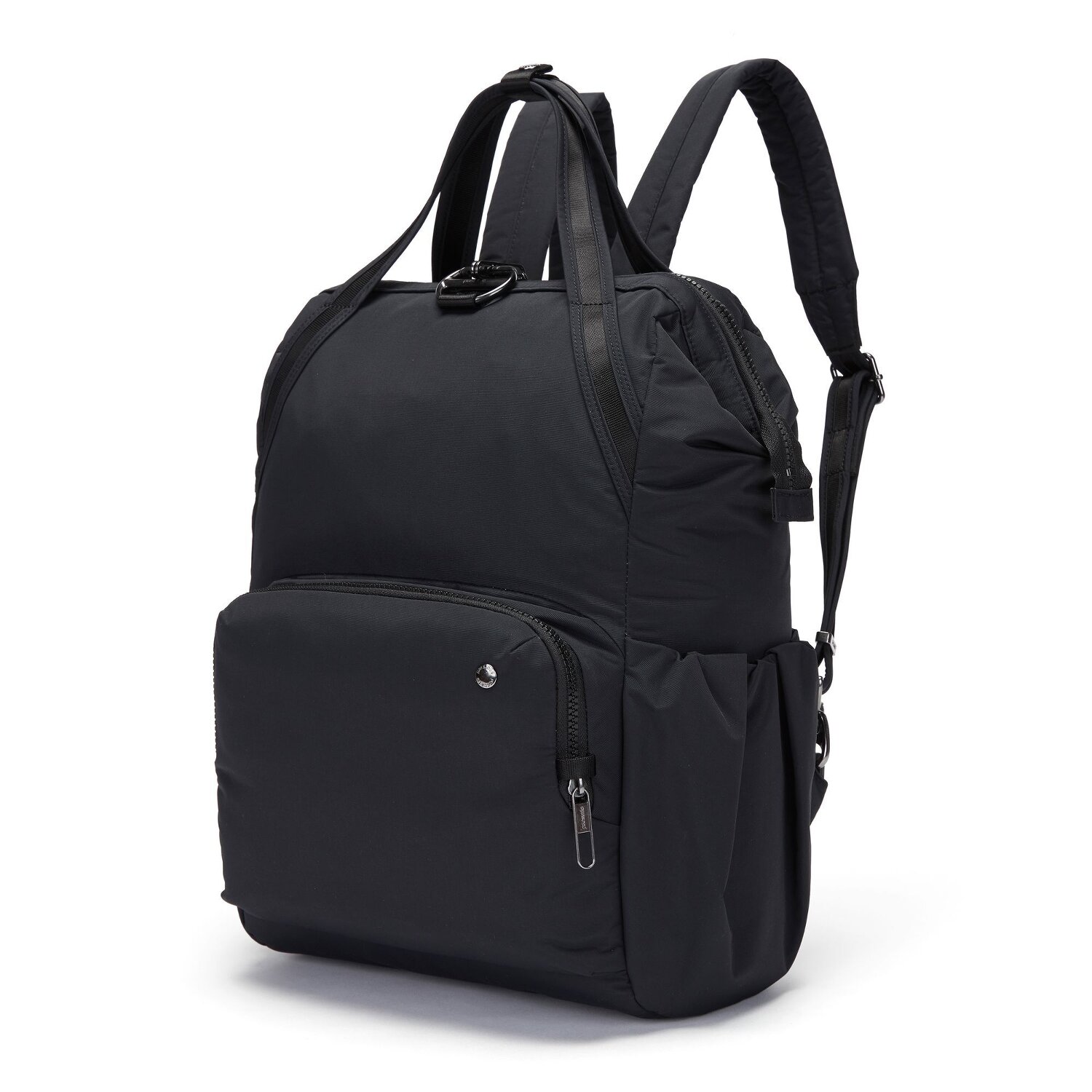 Pacsafe ist die Marke für Reisesicherheit. Der modische und zugleich praktische Anti-Diebstahl-Rucksack ist auch durch sein innovatives Material nachhaltig und umweltfreundlich. Spezielles Nylon-Garn wird aus den nicht mehr verwendbaren Fischernetzen und textilen Produktionsabfällen hergestellt, dies ist schonend für die Umwelt und sorgt für weniger Müll in der Natur. Er verfügt über ein übersichtliches Hauptfach mit gepolstertem Fach für Laptops bis zu 13 Zoll, sowie weitere Fächer für Wertsachen, Handy und mehr. Er ist ausgestattet mit zahlreichen, integrierten Sicherheitstechnologien, wie verborgenes Gewebe aus Edelstahldraht, mit Drahtkabel verstärkte Gurte, abschließbarer Verschluss, Sicherheitshaken und RFID-Schutz gegen Datendiebstahl. Die gepolsterten Schultergurten und eine rückseitige Trolley-Aufsteckfunktion runden den Rucksack ab. Der treue Begleiter auf Reisen und im täglichen Stadtleben. Volumen: 17 L