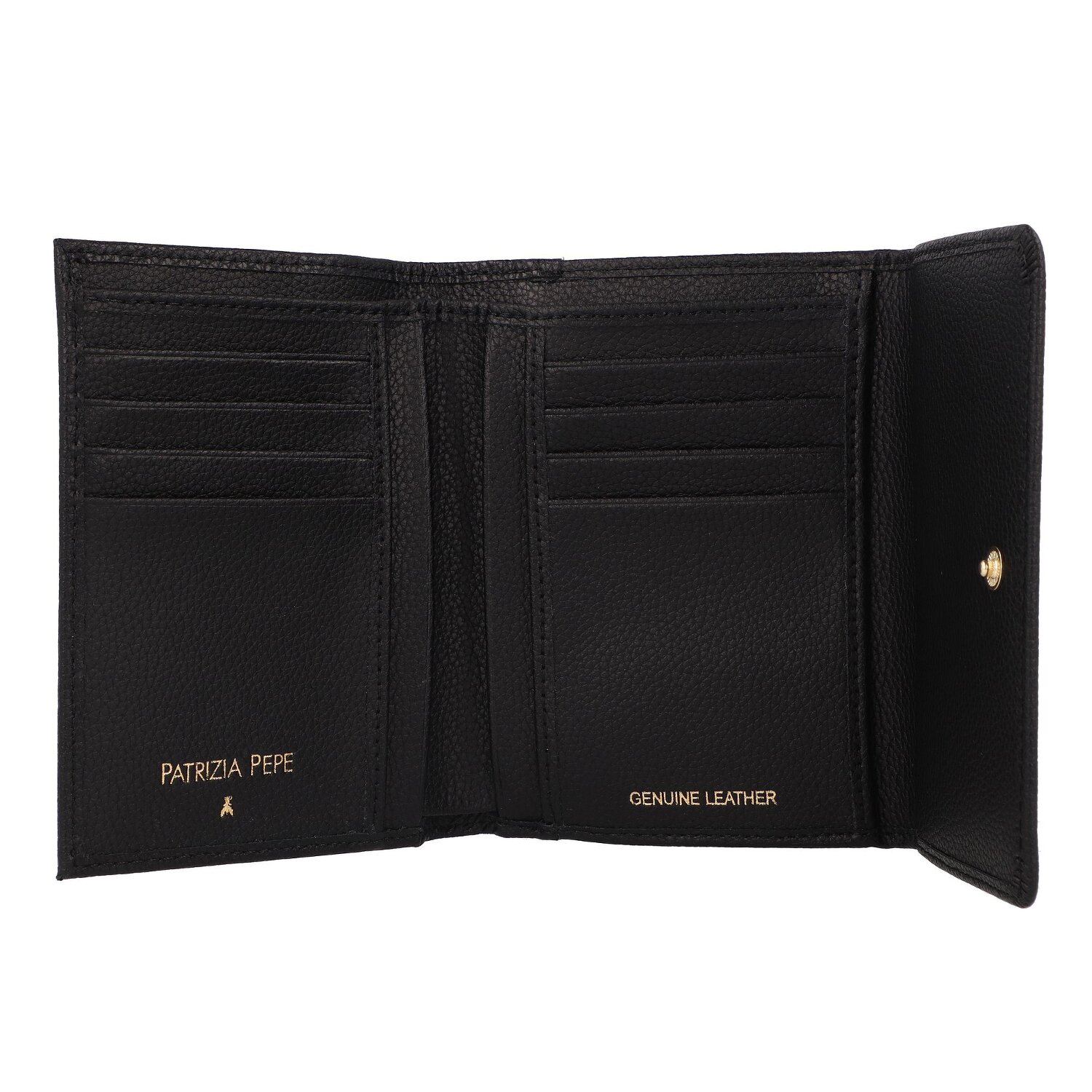 Design und Qualität zeichnen diese elegante Geldbörse der Marke Patrizia Pepe aus. Diese Damengeldbörse ist aus hochwertigem Leder gefertigt und mit Fächern für Scheine, Münzen und Karten ausgestattet.