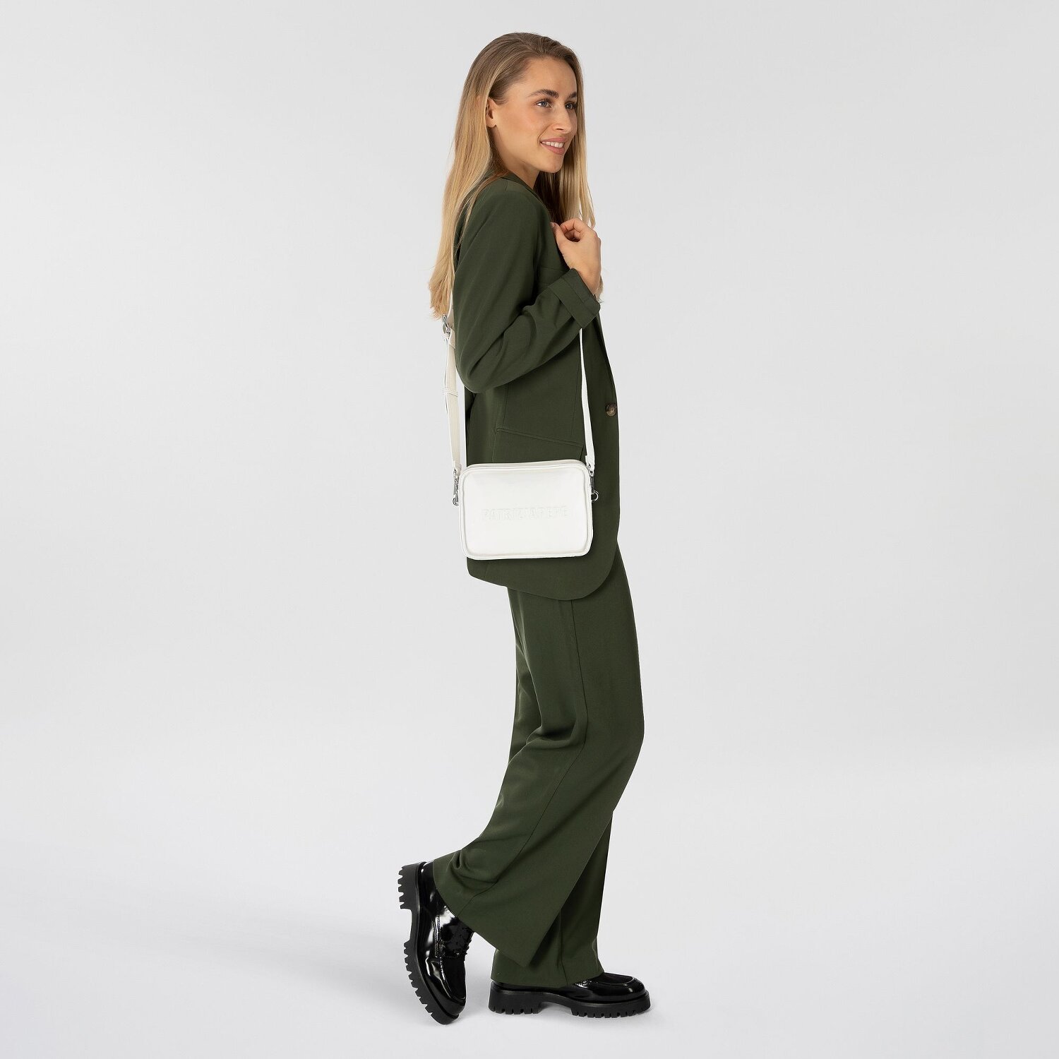Einfach unverzichtbar: Die Umhängetasche der Marke Patrizia Pepe aus der Serie "Perfection". Speziell für Frauen entwickelt, spielt sie gekonnt mit praktischen Details und schlichter Eleganz. Das hochwertige Leder verleiht der Tasche eine luxuriöse Ausstrahlung, während innere Fächer und ein Reißverschlussfach Platz für Ihre wichtigsten Essentials bieten. Der leicht zugängliche Reißverschluss sorgt für eine mühelose Handhabung. Äußerst praktisch ist auch ihr Riemen - abnehmbar, mit verstellbarer Länge und erfreulich lang - perfekt an Ihre Komfortbedürfnisse anpassbar. Investieren Sie in diese trendige Patrizia Pepe Umhängetasche und erleben Sie ein neues Gefühl von Freiheit und Stil.