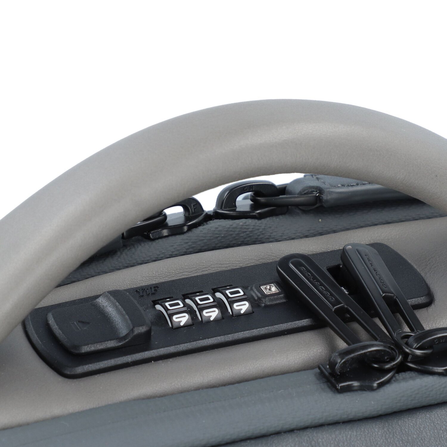 - Extras: verdecktes Adressschild, Tragegriff, Tasche für Fläschchen, Stiftelaschen, geschützter Reißverschluss, Fächer für A4 Unterlagen