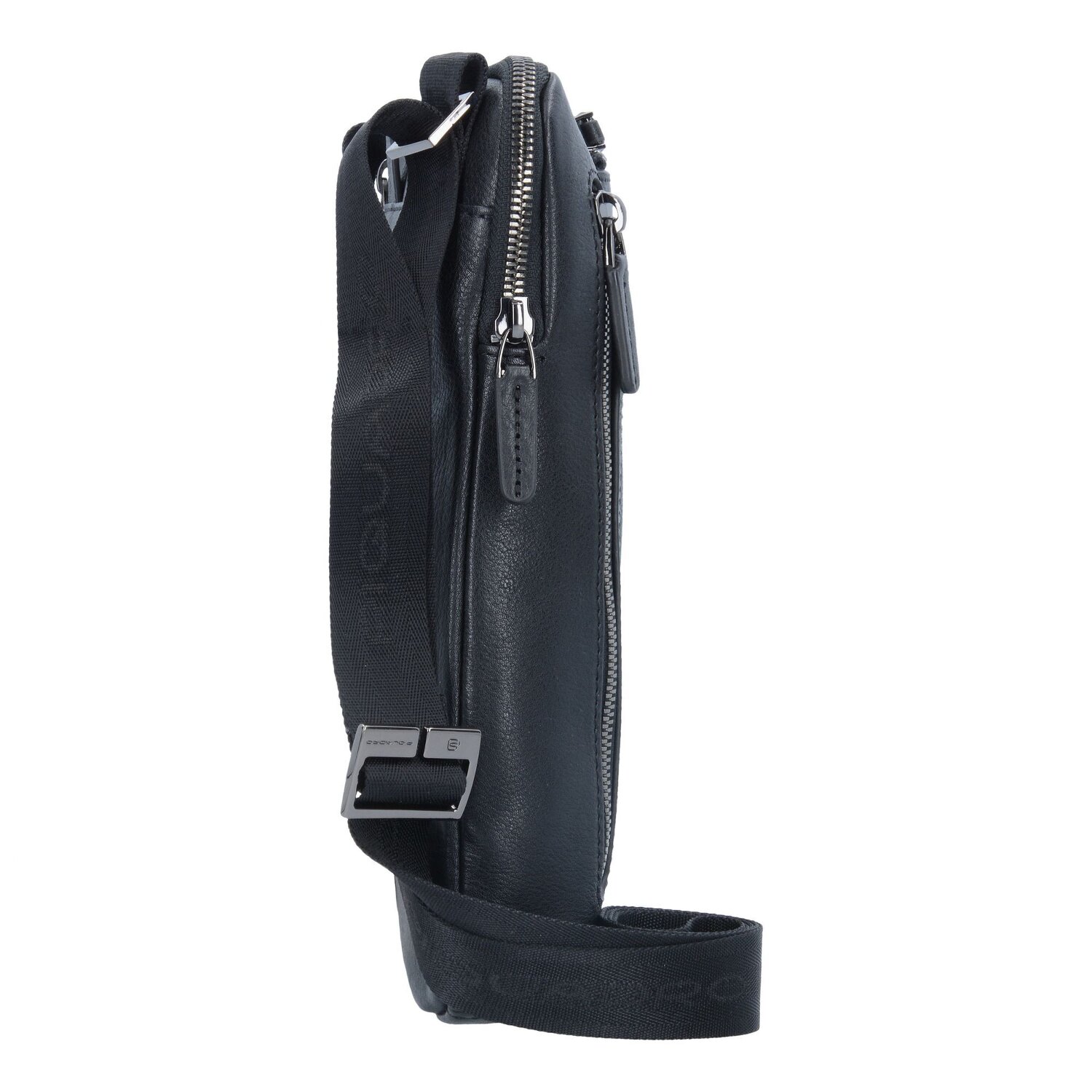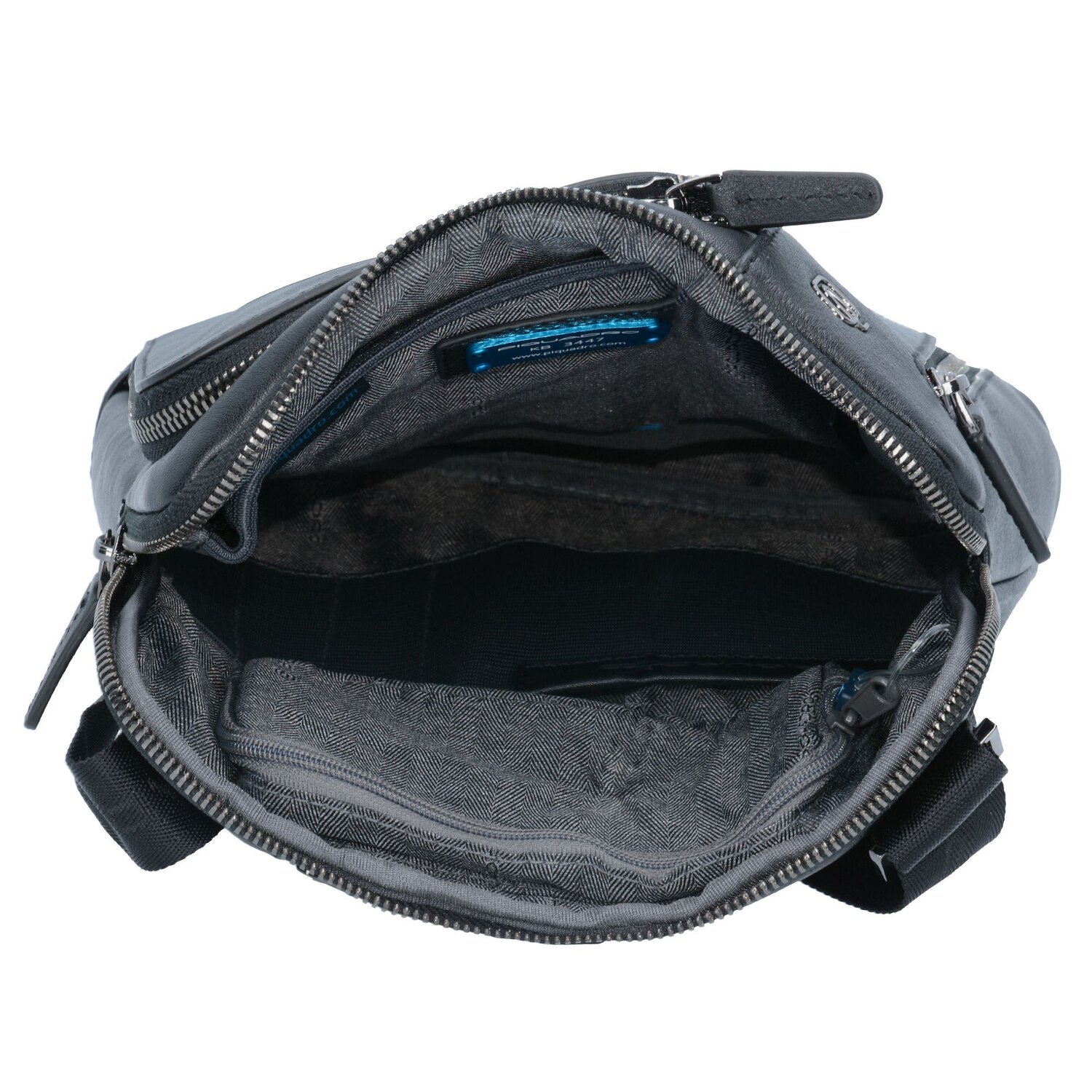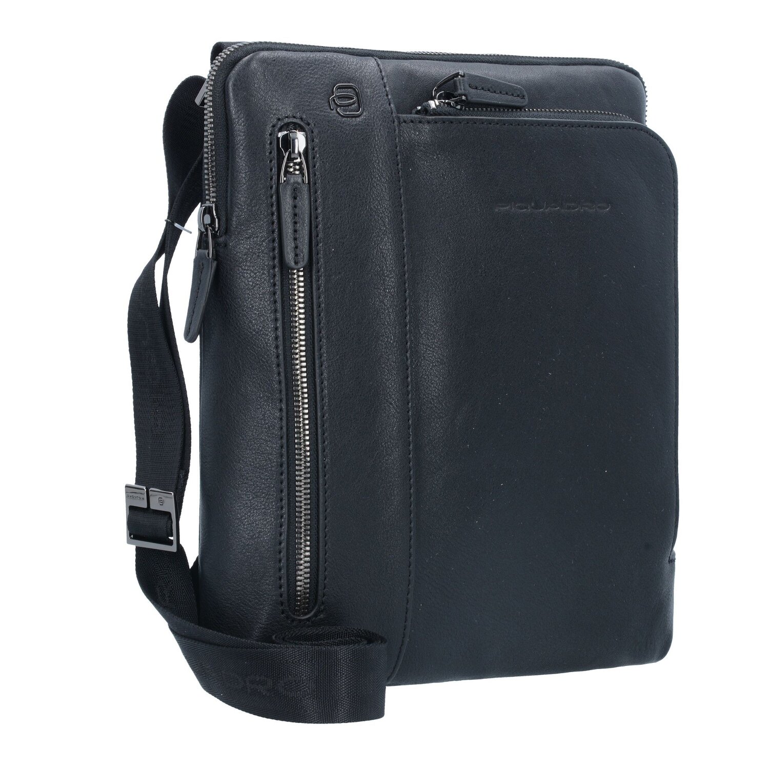 Praktische Black Square Umhängetasche von Piquadro aus hochwertigem Leder. Im Inneren finden die wichtigsten Utensilien und kleine elektronische Begleiter Platz.
