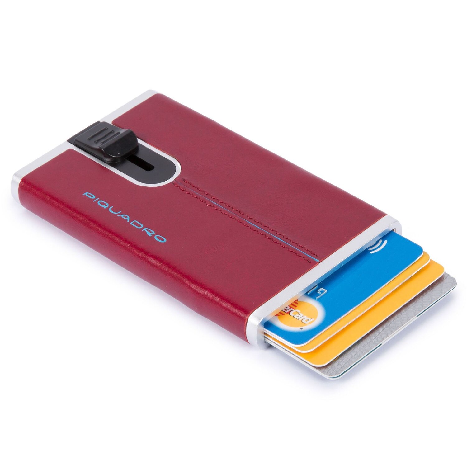 Kompaktes, elegantes Design, höchste Qualität und Sicherheit vereinen sich in diesem Kreditkartenetui der Blue Square Serie von Piquadro. In dem Kreditkartenfach finden bis zu 5 Karten Platz, die auf Knopfdruck in geordneter Reihenfolge herausgleiten. Zudem ist das Etui mit RFID-Schutz gegen Datendiebstahl ausgestattet.