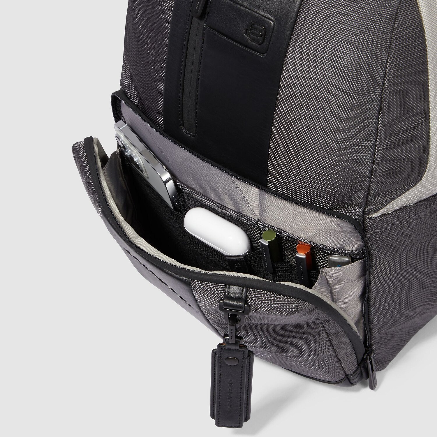 Treffend designed, elegant und höchst funktional definiert der Daypack Rucksack von der Marke Piquadro die Serie Brief neu. Als Begleiter für Damen, Herren und Unisex-Erwachsene bietet er herausnehmbare Taschen, eine Brillenschlaufe, zusätzliche Aussenfächer und besticht durch eine Rückenpolsterung, die das angenehme Tragen sicherstellt. Robust und widerstandsfähig ist das verwendete Polyester, das einen zuverlässigen Schutz bei jeder Wetterlage gewährleistet. Der praktische Reissverschluss garantiert einen kinderleichten und schnellen Zugang zu den Gegenständen. Herausstechend ist das vorhandene Laptopfach, das Laptops bis zu einer Bildschirmdiagonale von 37 cm problemlos beherbergt. Der bequeme Tragegriff und das separate Kabeltäschchen runden das vielseitige Profil ab. Mit diesem Piquadro Rucksack entscheiden Sie sich für Qualität und Stil – entdecken Sie den Unterschied!