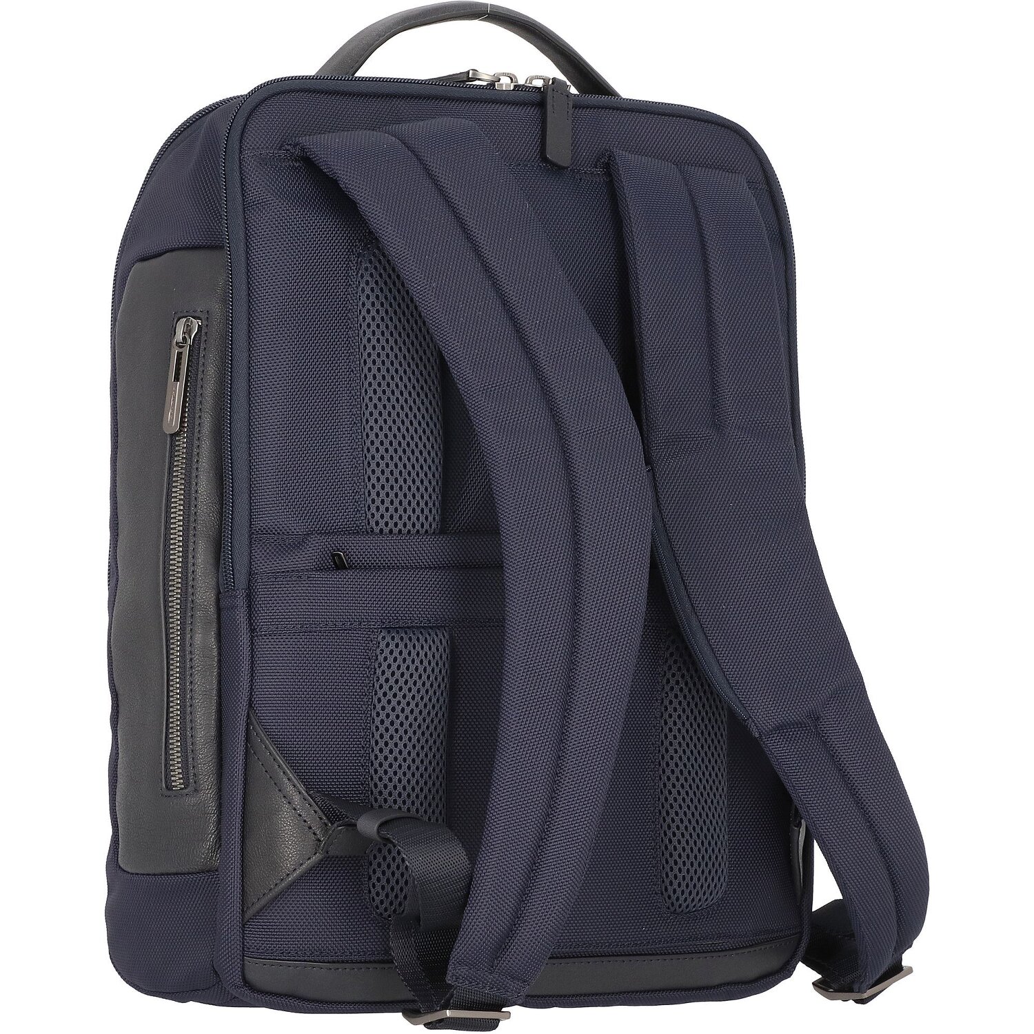 Rucksack von Piquadro der Brief Serie aus recyceltem, widerstandsfähigem Nylon. Der Rucksack überzeugt durch seine hohe Verarbeitungsqualität und sein smartes Innenleben. Das Hauptfach passend für A4-Unterlagen bietet genug Platz für alles, was man im Berufsalltag braucht, das Nebenfach ist mit einem gepolsterten Laptopfach und Tabletfach ausgestattet. Weitere Highlights sind Stiftelaschen, eine seitliche Flaschen- oder Regenschirmtasche, eine Tasche für AirPods, ein Geheimfach mit RFID-Schutz gegen Datendiebstahl, ein Anti-Diebstahl Kabel für mehr Sicherheit. Ein gepolstertes Tragesystem sowie rückseitige Trolley-Aufsteckfunktion runden das Design ab.