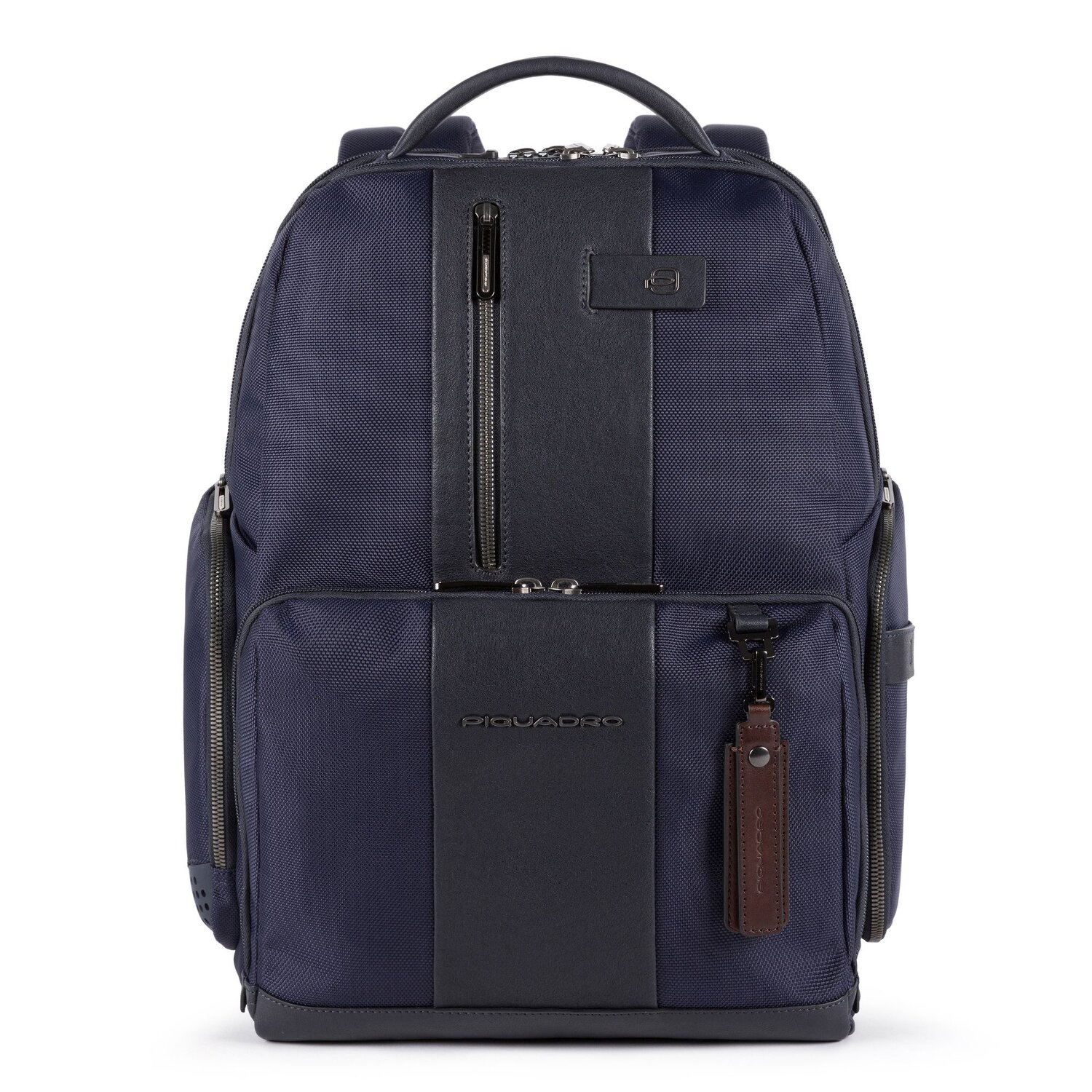 Fastcheck Rucksack von Piquadro der Brief Serie aus recyceltem, widerstandsfähigem Nylon. Der Rucksack überzeugt durch seine hohe Verarbeitungsqualität und sein smartes Innenleben. Das Hauptfach passend für A4-Unterlagen bietet genug Platz für alles, was man im Berufsalltag braucht, das Nebenfach ist mit einem gepolsterten Laptopfach und Tabletfach ausgestattet. Weitere Highlights sind Stiftelaschen, ein Brillenhalter, eine seitliche Flaschen- oder Regenschirmtasche, ein integrierter Anschluss für USB für einfaches Aufladen unterwegs, ein Geheimfach mit RFID-Schutz gegen Datendiebstahl, ein Anti-Diebstahl Kabel mit Zahlenschloss für mehr Sicherheit. Ein gepolstertes Tragesystem sowie rückseitige Trolley-Aufsteckfunktion runden das Design ab.