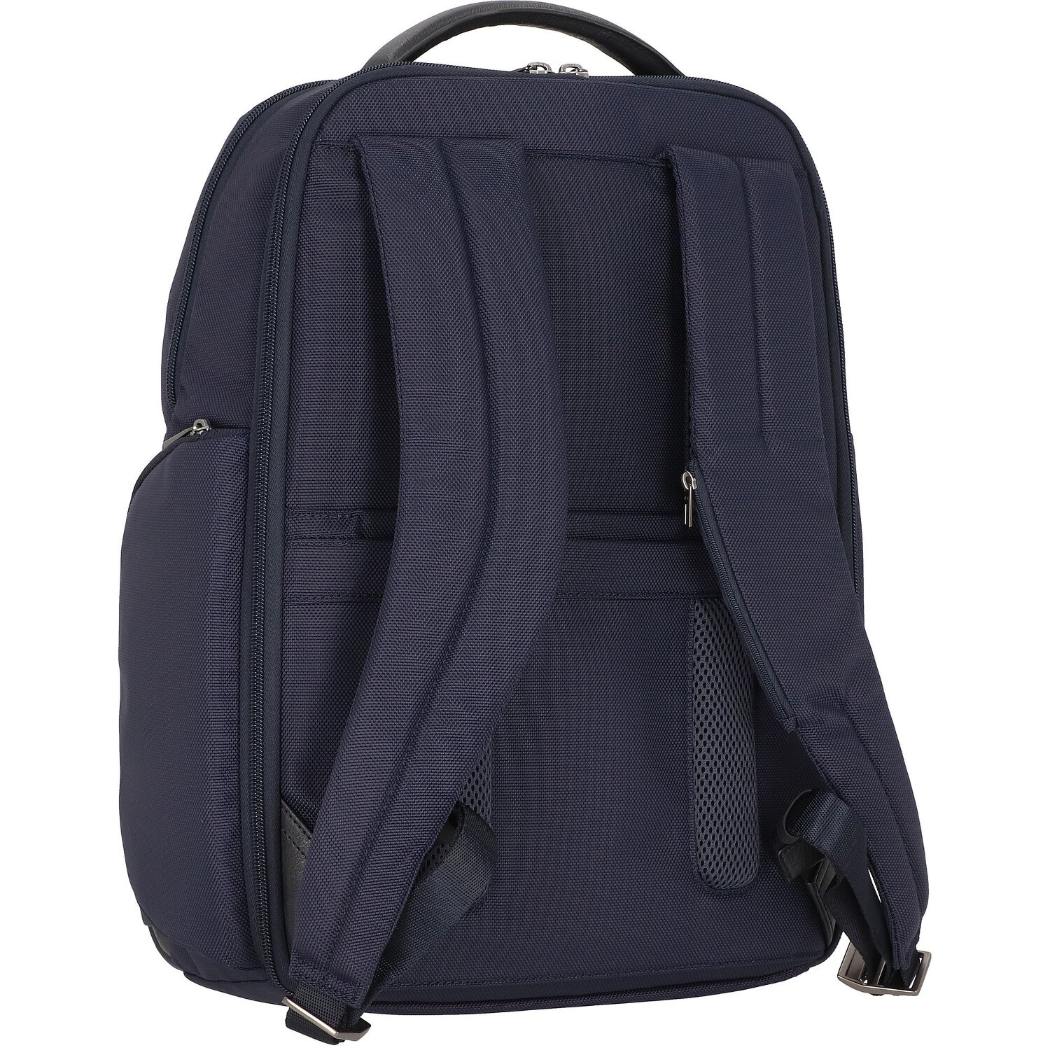 Modernes Design und durchdachte Funktionalität machen diesen edlen Rucksack von Piquadro zum idealen Begleiter im Beruf oder auf Reisen. Er wurde aus recyceltem, widerstandsfähigem Nylon gefertigt und ist ausgestattet mit gepolstertem Fach für Laptops mit Bildschirmdiagonale bis ca. 39,5 cm (15,6 Zoll), Tabletfach, weiteren Nebenfächern für Handy, Wertsachen und mehr sowie Brillen-, Stiftehalter und RFID-Schutz gegen Datendiebstahl. Eine Halterung ermöglicht es, ihn auf den Ausziehgriff eines Trolleys zu stecken. Der praktische und gleichzeitig stylische Begleiter für den Arbeitsalltag oder Geschäftsreise.