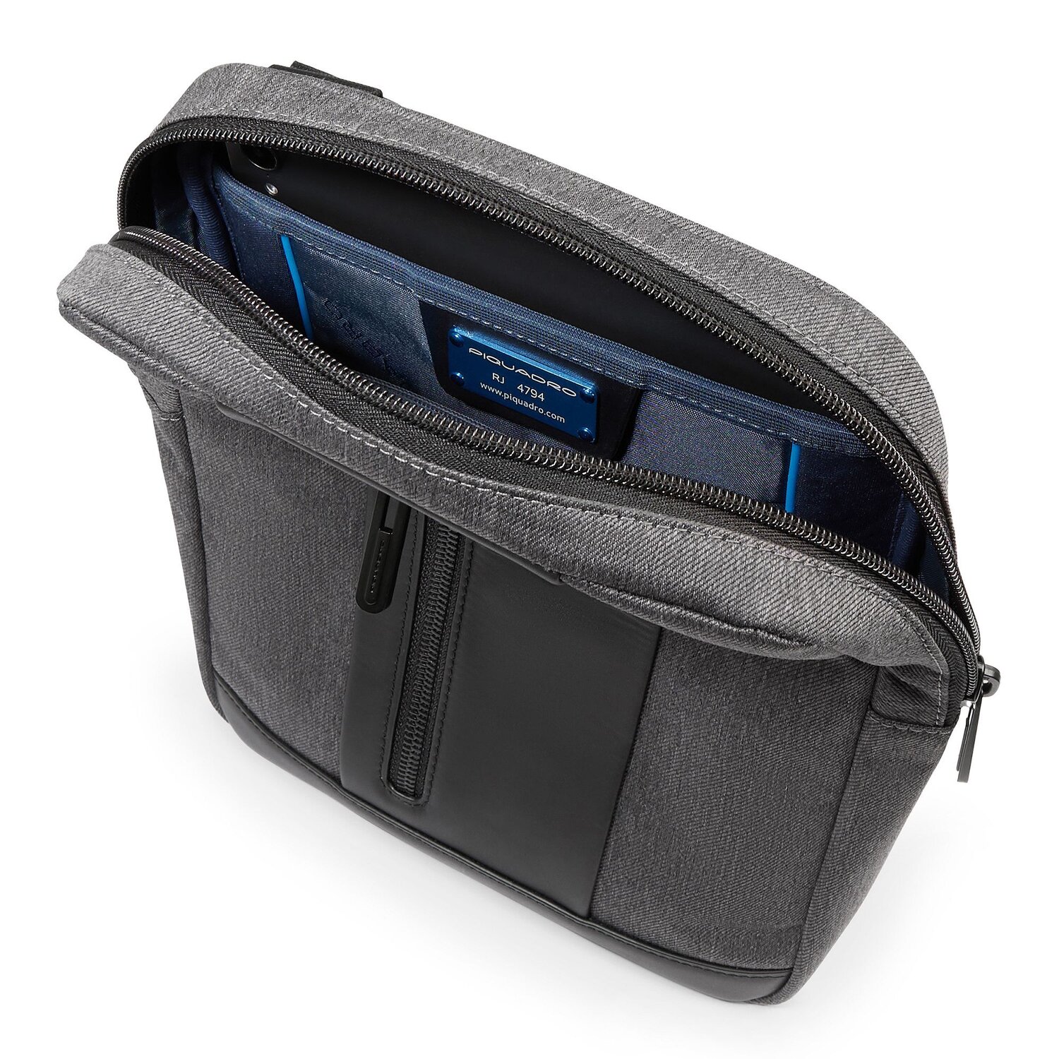 Modernes Design und Funktionalität machen diese praktische Umhängetasche von Piquadro aus recyceltem, widerstandsfähigem Nylon zum idealen Begleiter im Alltag. Mit gepolstertem Tabletfach, Kopfhörerausgang und verstellbarem Umhängeriemen.