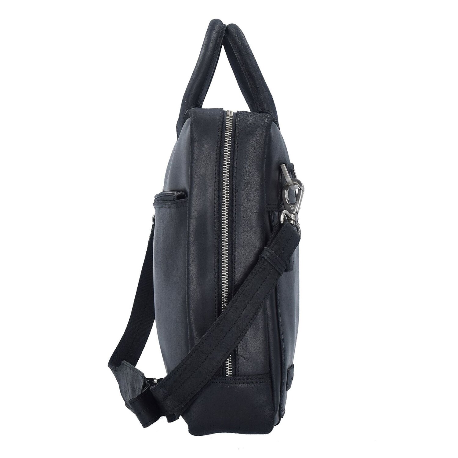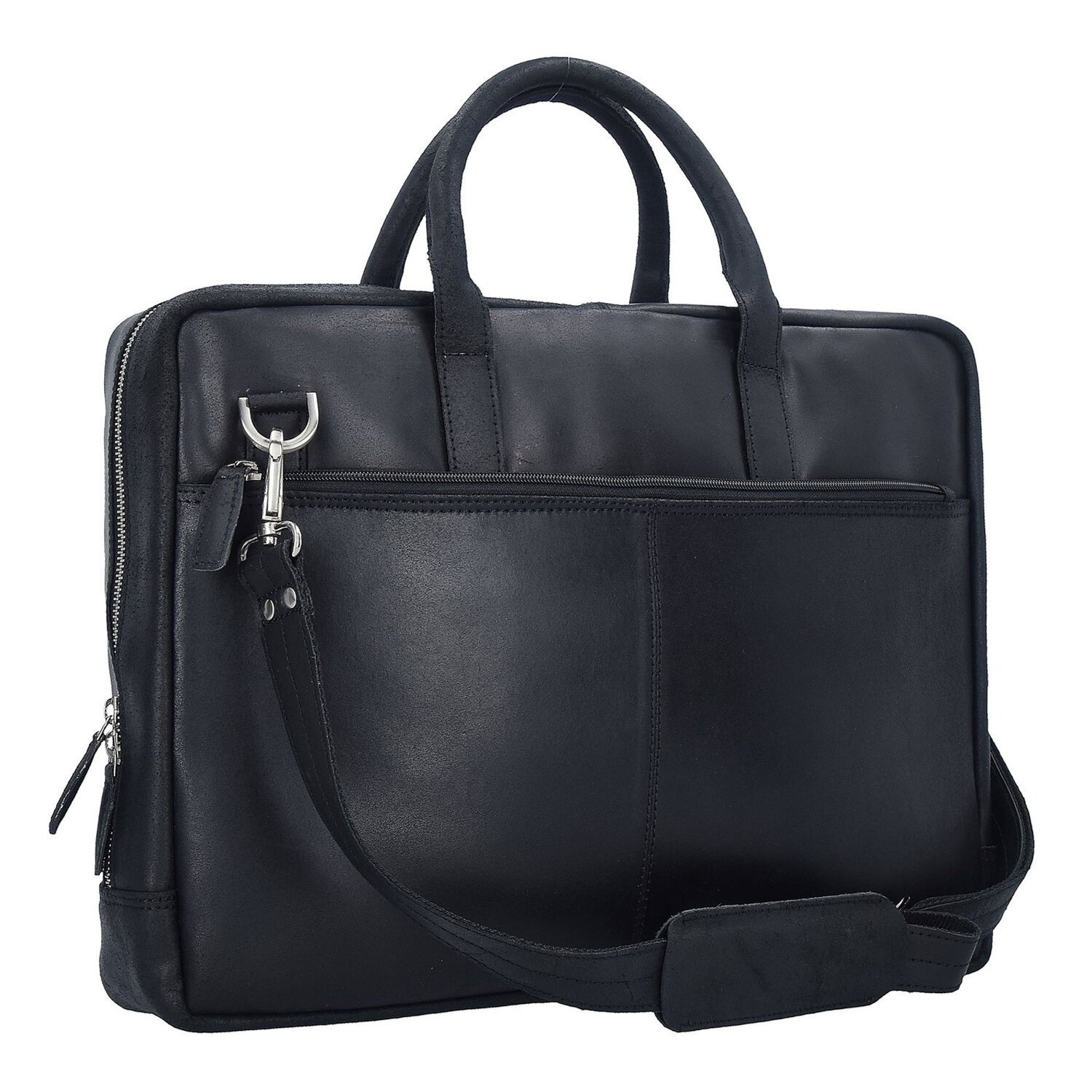 Aktentasche von Plevier aus Leder. Die Tasche hat einen abnehmbaren Umhängeriemen und kann somit auch über der Schulter getragen werden. Sie schließt mit einem Reißverschluss und hat ein RV-Innenfach. Zusätzlich hat die Tasche ein Tabletfach, dass auch als DIN A4-Fach für Unterlagen genutzt werden kann. Beide Fächer sind gepolstert und können mit einem Klettverschluss gesichert werden. Mit Laptopfach passend für Laptops mit Bildschirmdiagonale von ca. 40 cm (15,6 Zoll)