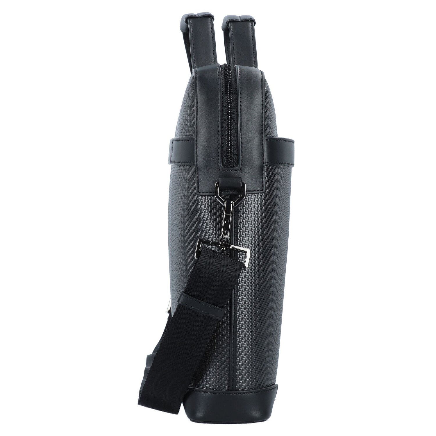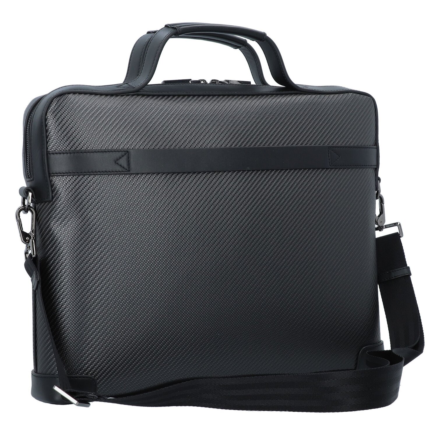 Elegante Aktentasche mit der unverkennbaren Carbon-Optik. Elemente aus exklusivem Nappaleder und Details in schwarzglänzender Galvanik betonen den unverwechselbaren Charakter der Aktentasche. Dank des smarten Interieur-Konzepts mit separatem Laptopfach, Trolley-Aufsteckfunktion und rückseitiger Eingrifftasche macht die Tasche nicht nur Eindruck, sondern auch einen exzellenten Job.