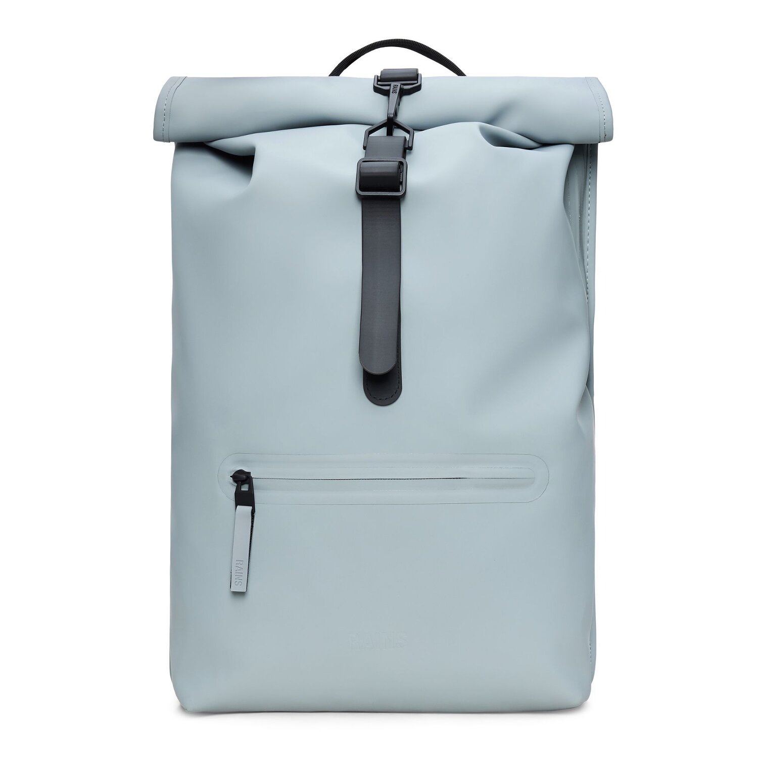 Schlichtes Design und wasserdichtes Material zeichnen diesen Rolltop Rucksack von Rains aus. Das geräumige Hauptfach bietet viel Platz. Der ideale Begleiter im Alltag.