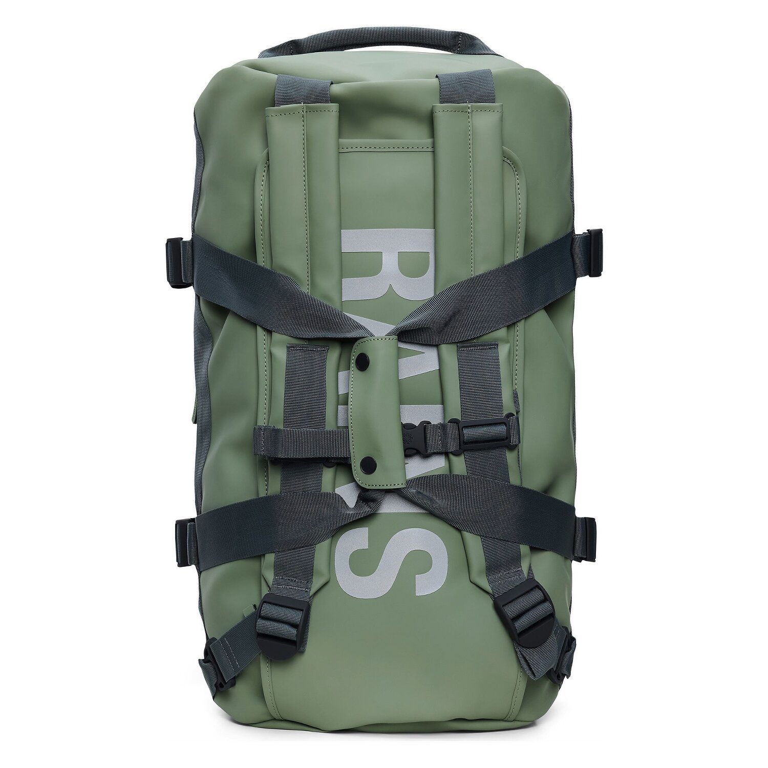 Die geräumige Reisetasche von Rains zeichnet sich durch wasserdichtes Material, kastenförmige Silhouette und sportliche Details aus. Der sportliche Look wird durch vier am Gurtband befestigte Schnallen ergänzt. Je nach Bedarf kann die Reisetasche dann entweder als Tasche oder als praktischer Rucksack getragen werden. Der ideale Begleiter auf Reisen oder zum Sport.