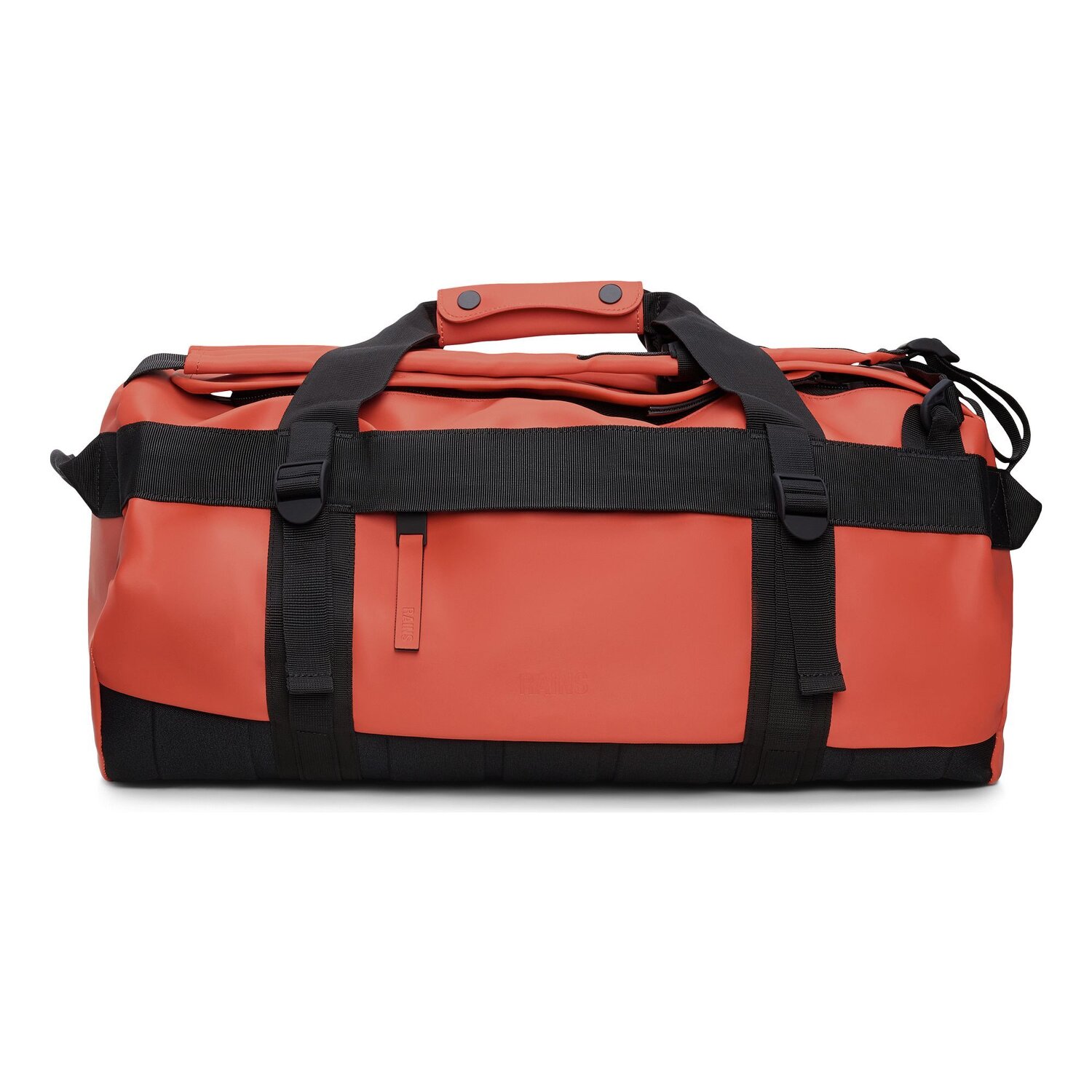 Die geräumige Reisetasche von Rains zeichnet sich durch wasserdichtes Material, kastenförmige Silhouette und sportliche Details aus. Der sportliche Look wird durch vier am Gurtband befestigte Schnallen ergänzt. Je nach Bedarf kann die Reisetasche dann entweder als Tasche oder als praktischer Rucksack getragen werden. Der ideale Begleiter auf Reisen oder zum Sport.