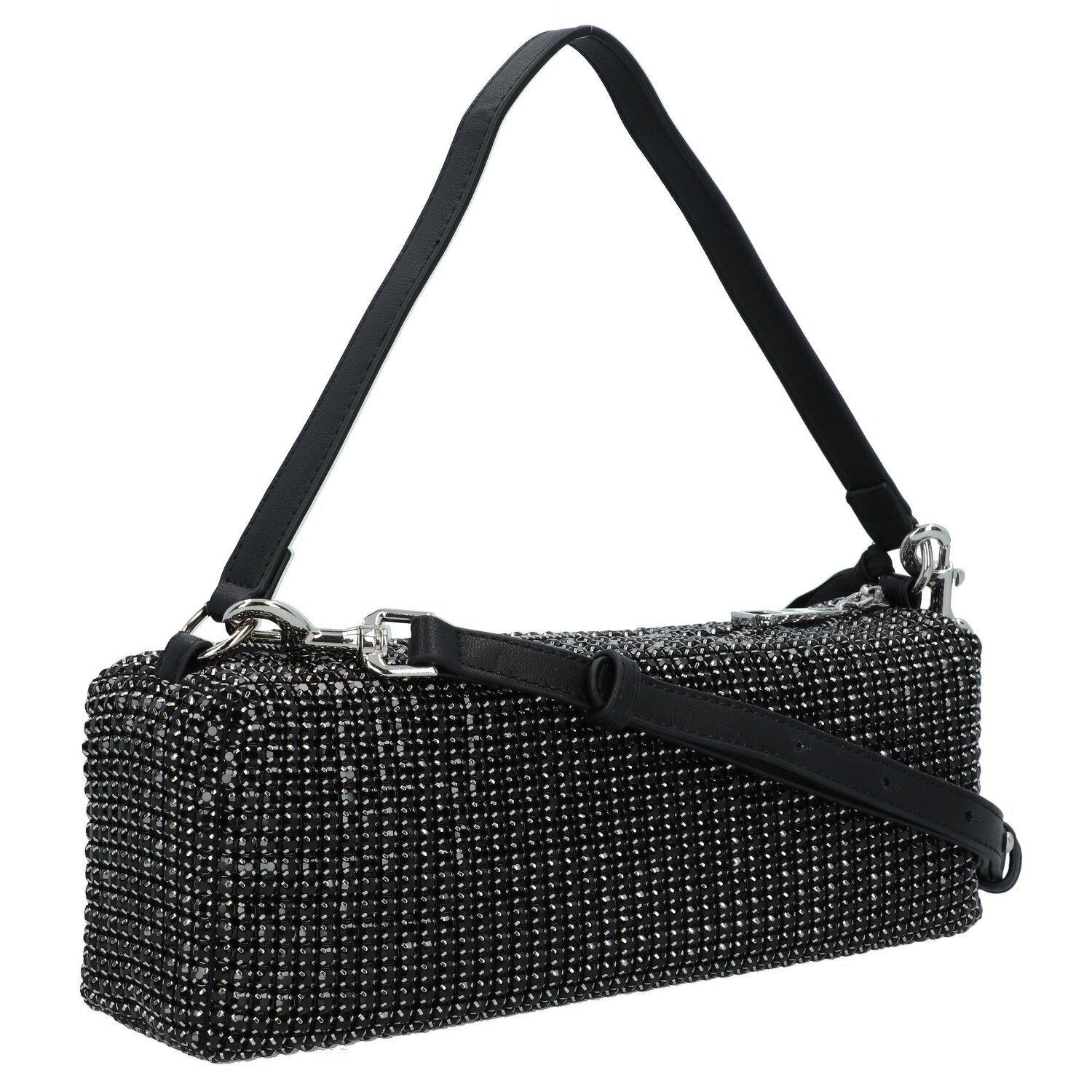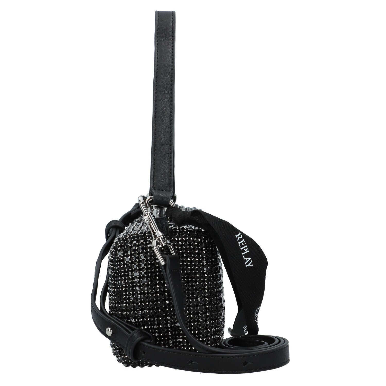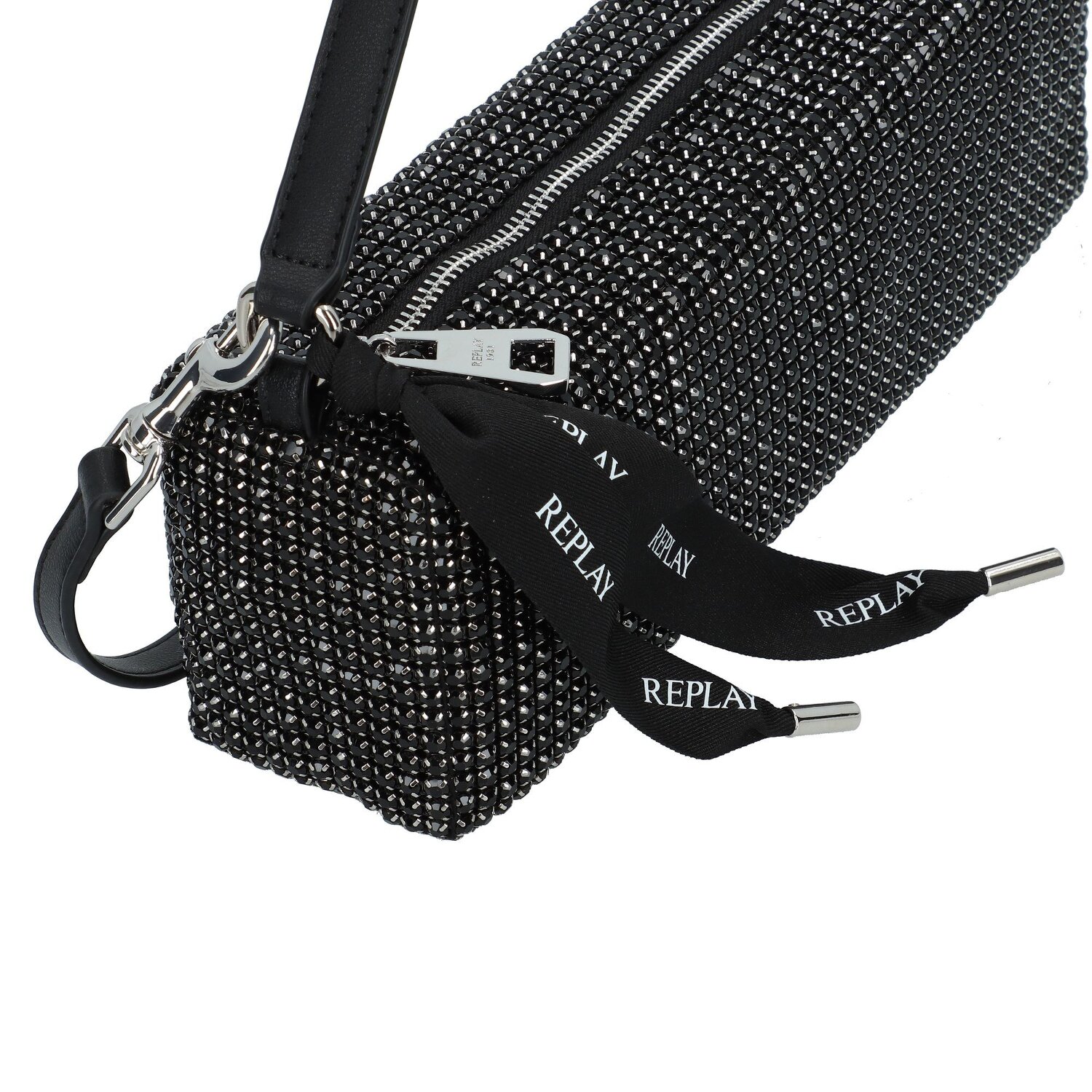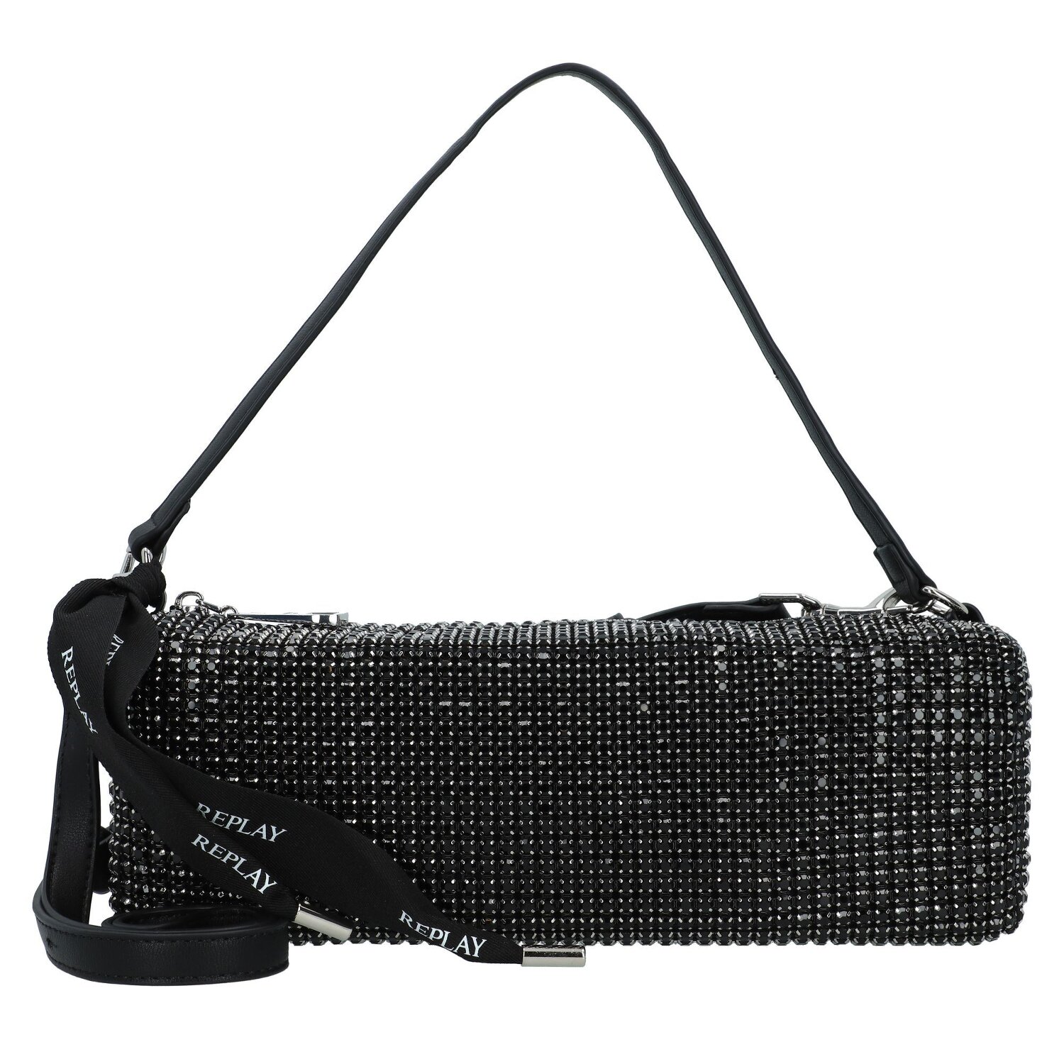 Spannende Schultertasche von Replay. das geräumige Hauptfach bietet genug Stauraum für alles was eine Frau über einen längeren Abend hinweg brauchen kann und mehr. Das Hauptfach wird von einem Reißverschluss- und einem Steckfach ergänzt die für mehr Übersicht sorgen. der abnehmbare Umhängeriemen verleiht der Tasche eine gewisse Variation die sie zu einem wunderbaren Accessoire macht. Die Strass steine auf der Oberfläche der Tasche sorgen für das gewisse etwas und sind ein echter hingucke auf jeder Party. Modernes aufregendes Design trifft praktische Gestaltung und ergeben zusammen den Idealen Abendbegleiter für besondere Gelegenheiten.