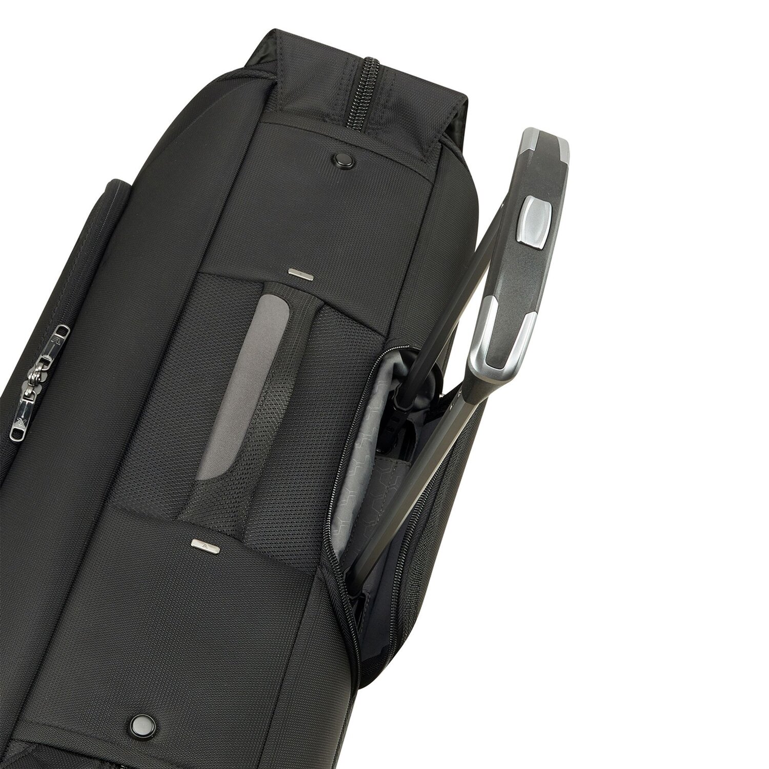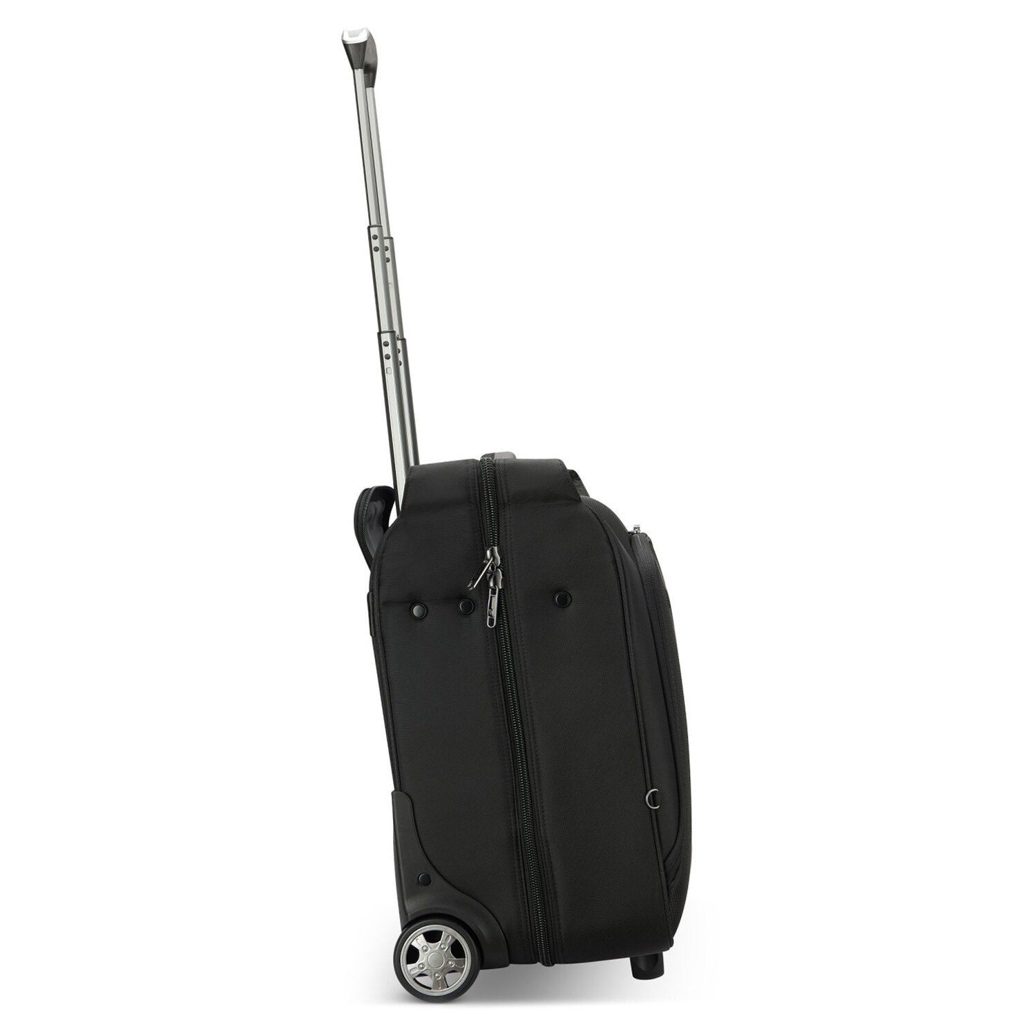 - Ausstattung: Tasche(n) innen, Tasche(n) außen, Reißverschlussfach, Netzfach, arretierbarer Griff