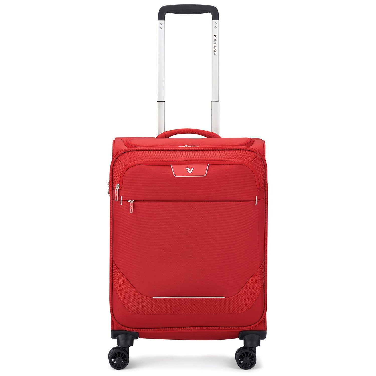 Gut organisierter Kabinentrolley der Joy Serie von Roncato aus reißfestem Polyester ist ideal für kurze Geschäfts- oder Vergnügungsreisen, da er bei allen Fluggesellschaften den vorgeschriebenen Maßen entspricht. Er verfügt über ein geräumiges Hauptfach mit Packriemen und einem Mesh-Reißverschlussfach sowie weitere Reißverschlussfächer auf der Frontseite. Mit vier leicht zu manövrierenden und geräuscharmen Doppelrädern, einem integriertem TSA-Schloss für mehr Sicherheit und einem USB-Anschluss für Powerbank ausgestattet.