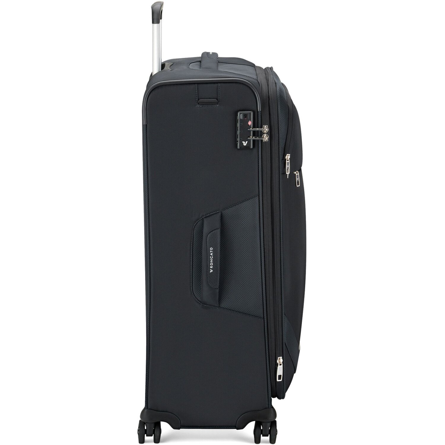 Gut organisierter Trolley der Joy Serie von Roncato aus reißfestem Polyester. Er verfügt über ein geräumiges Hauptfach mit Packriemen und einem Mesh-Reißverschlussfach sowie weitere Reißverschlussfächer auf der Frontseite. Mit vier leicht zu manövrierenden und geräuscharmen Doppelrädern, einem integriertem TSA-Schloss für mehr Sicherheit und einer praktischen Dehnfalte für die Erweiterung des Packvolumens ausgestattet.
