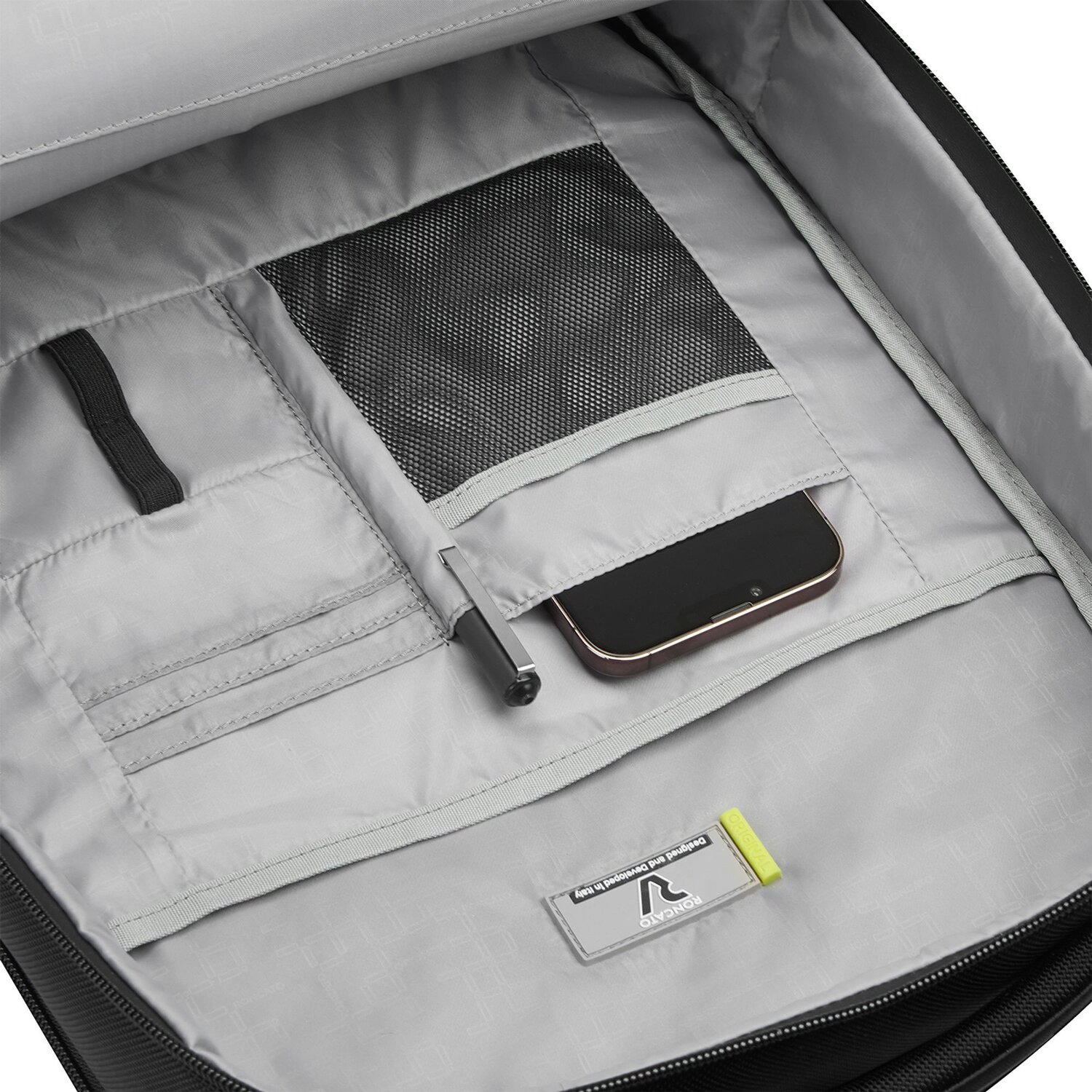 Erfahrung trifft auf Funktionalität im Trial Rucksack von Roncato. Diese Serie spricht mit ihrem Design Damen sowie Herren an. Ein echtes Multitalent, aus robustem Polyester gefertigt, mit zahlreichen Eigenschaften wie Rückenpolsterung für optimalen Tragekomfort, äußere und innere Taschen für die Organisation und ein praktischer Reißverschluss für einen einfachen Zugang. Besonders hervorzuheben ist das auf einem Trolley steckbare Design und das eingebaute Netzfach. Der Rucksack ist mit sorgfältig platzierten Stiftelasche und einem bequemen Tragegriff ausgestattet. Ein Highlight sind die beiden Sonde Fächer ein integriertes Tablet Fach, sowie ein Laptopfach, das Raum bietet für Geräte mit einer Bildschirmdiagonale von bis zu 42 cm. Machen Sie den Trial Rucksack zu Ihrem nächsten treuen Begleiter. Das Laptopfach fasst Geräte von bis zu ca. 42 cm (ca. 17 Zoll) Bildschirmdiagonale.