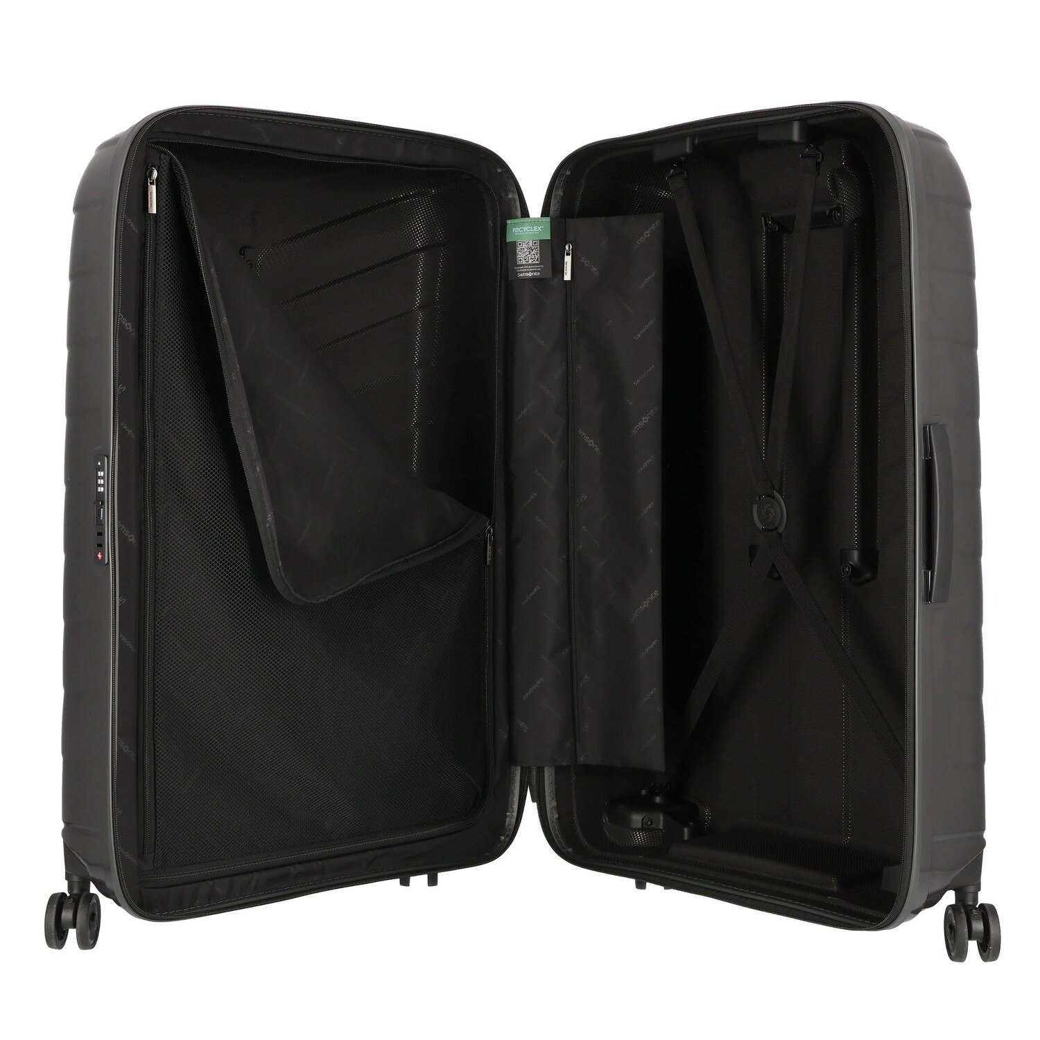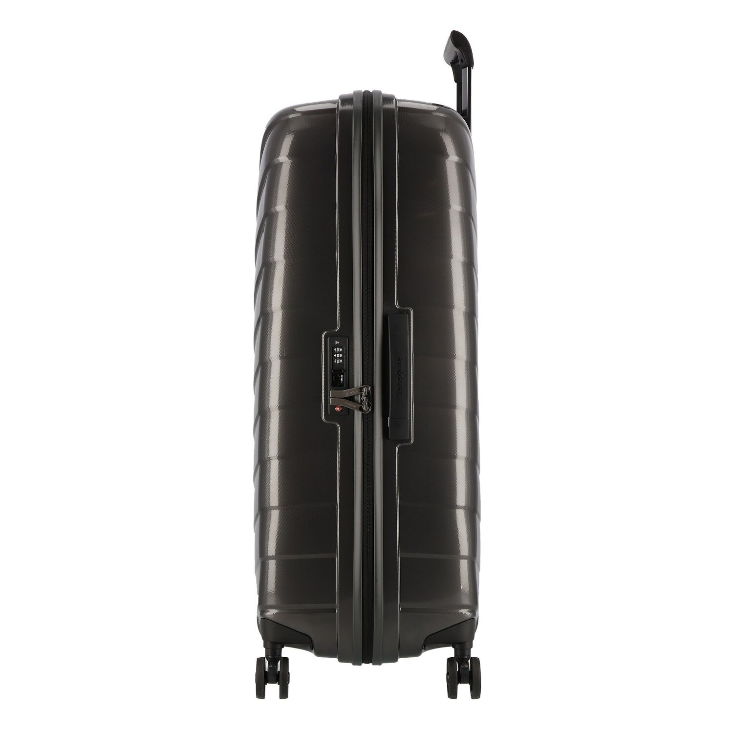 Der neueste sehr leichte große Koffer von Samsonite. Widerstandsfreie, also sehr leichtgängige Rollen.