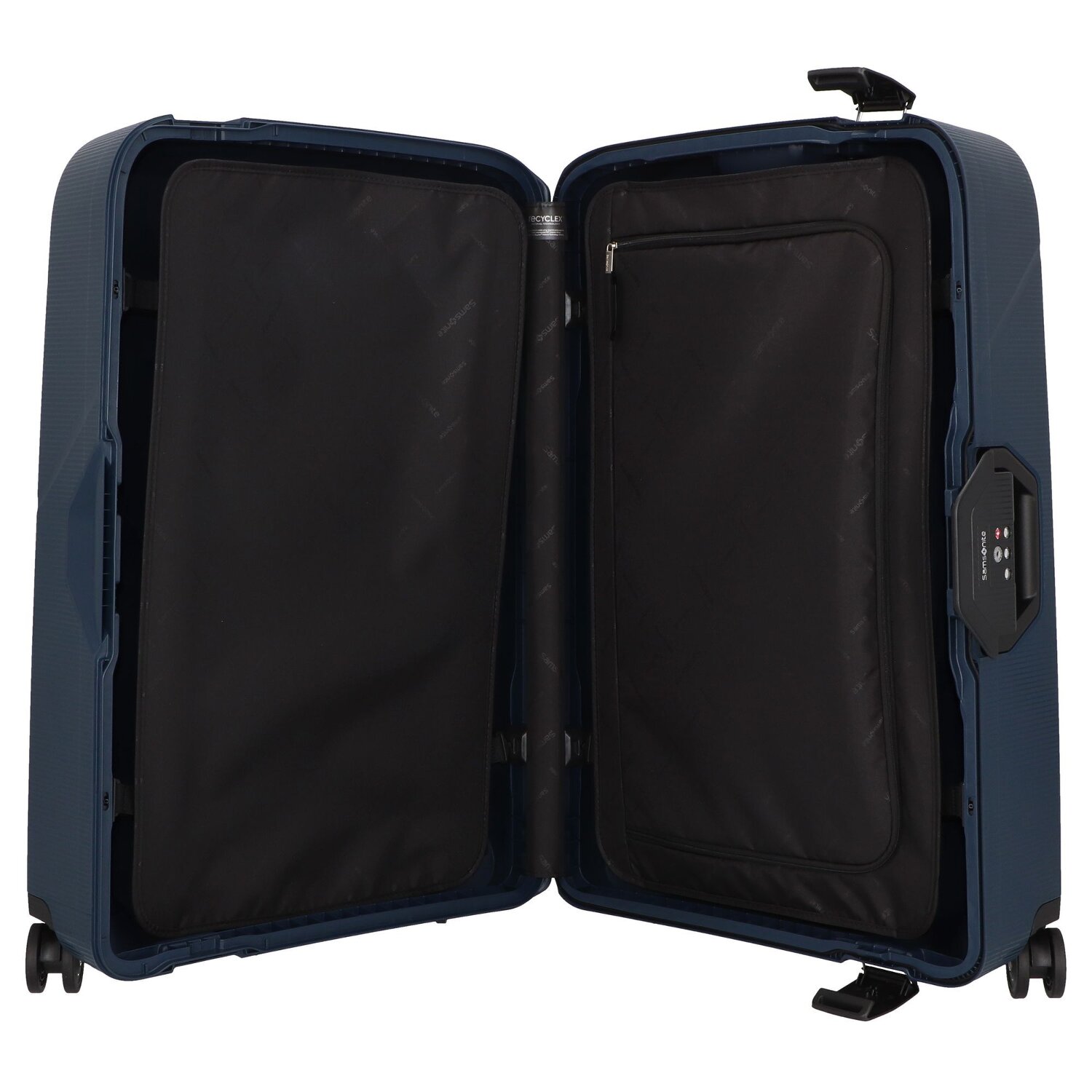 Luxuriöser Trolley der Marke Samsonite aus strapazierfähigem Polypropylen mit vier Rollen und arretierbarem Teleskopgriff. Das edle Design, die hochwertige Verarbeitung und das stabile Material machen den Trolley zur optimalen Wahl für die nächste Reise.