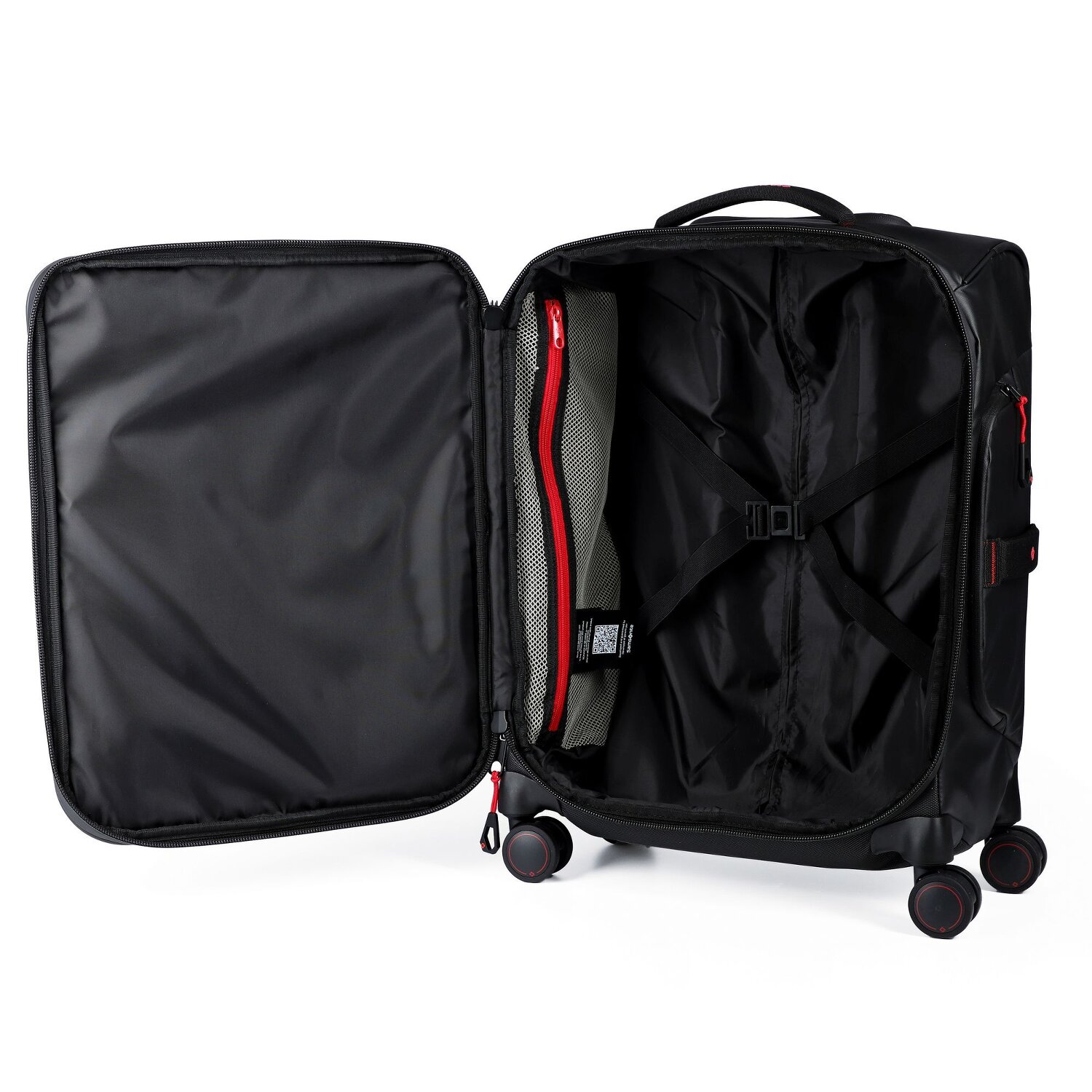 - Ausstattung: Tasche(n) innen, Tasche(n) außen, Reißverschlussfach, Kreuzpackgurt, arretierbarer Griff