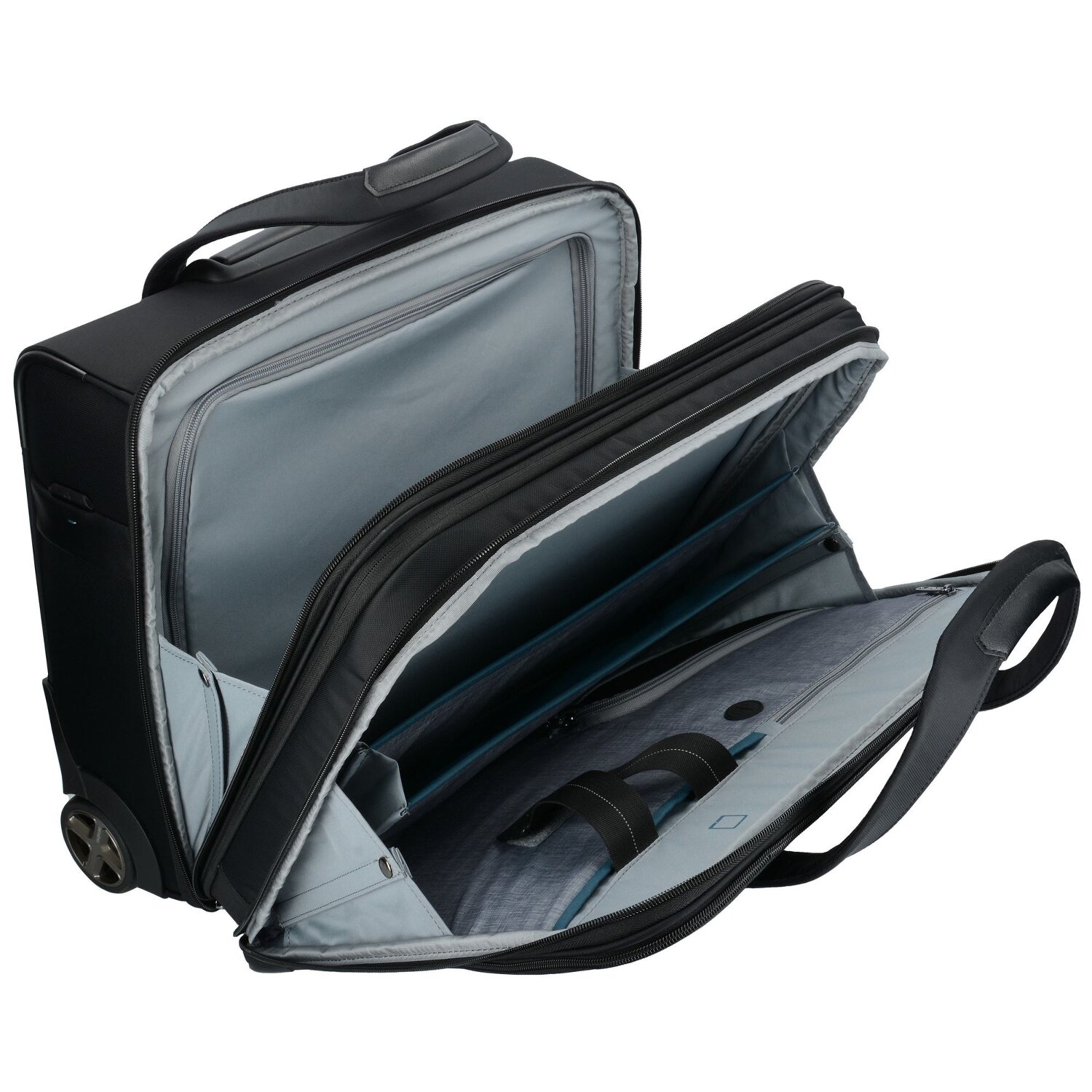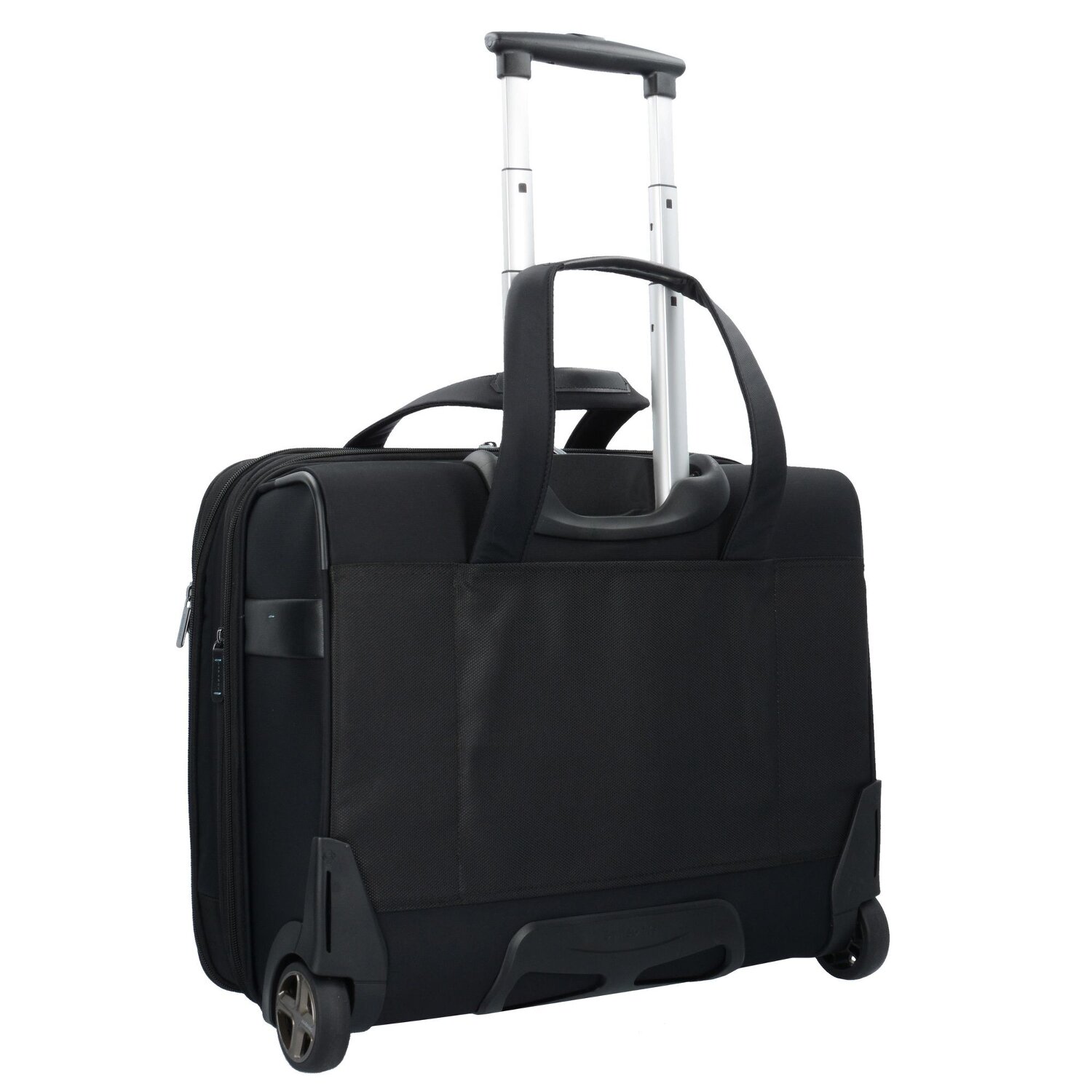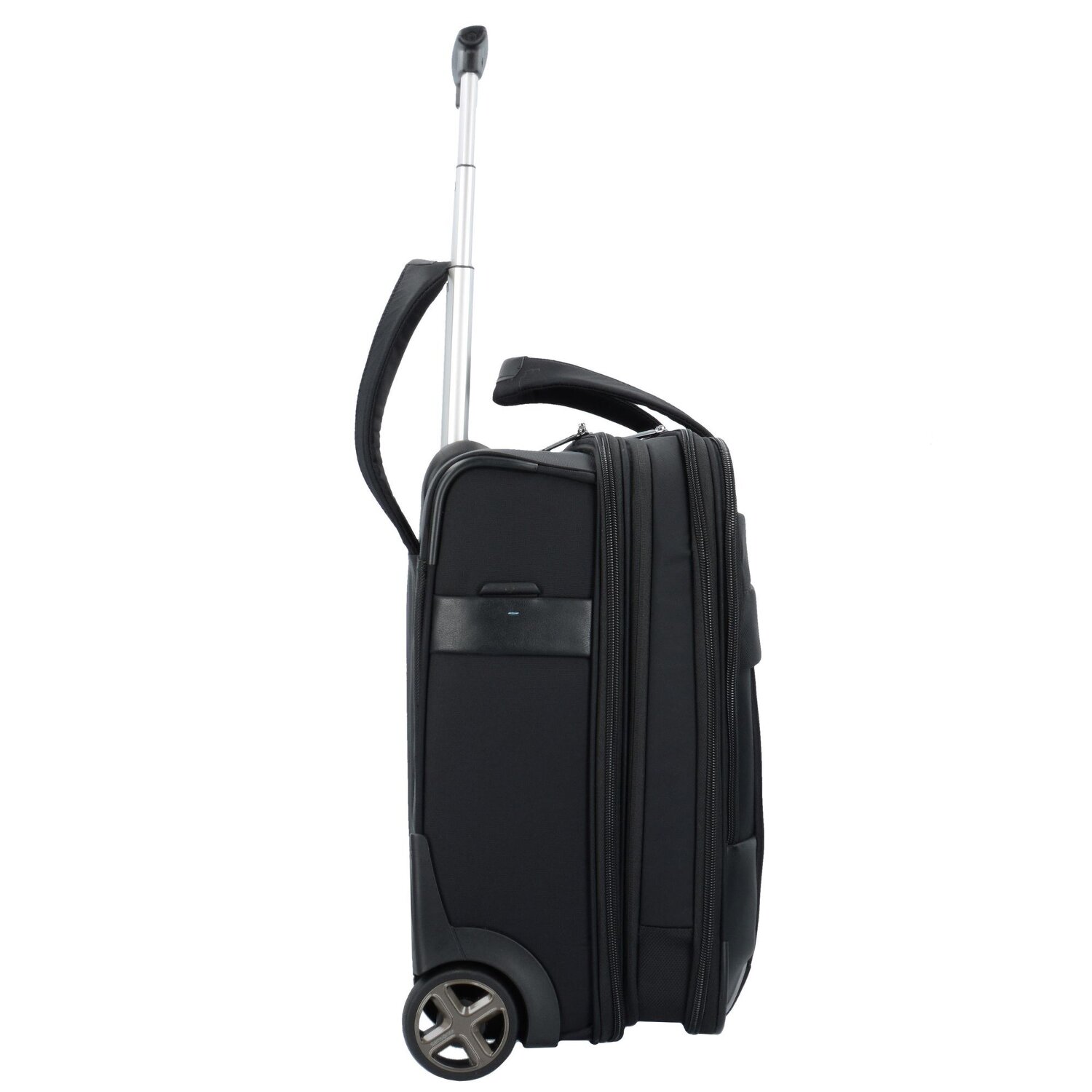 Hochwertiger Business-Trolley von Samsonite mit 2 Rollen und arretierbarem Teleskopgriff. Der Trolley überzeugt durch seine hohe Verarbeitungsqualität, Stabilität und Funktionalität. Er verfügt über drei geräumige Hauptfächer, Laptop- und Tabletfach sowie über zahlreiche weitere Nebenfächer für eine optimale Übersicht. Der ideale Begleiter auf Reisen.