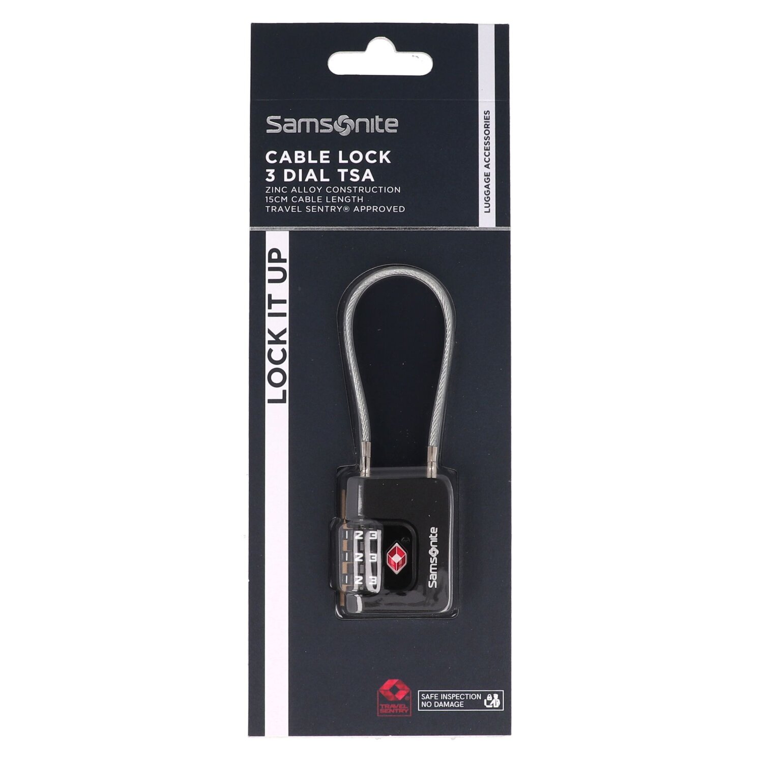 Sicher reisen mit Stil: Das TSA-Zahlenschloss von Samsonite aus robuster Zinklegierung schützt dein Gepäck zuverlässig. Mit flexiblem Kabelverschluss, individuell einstellbarem Zahlencode und edlem Samsonite-Logo bist du weltweit bestens abgesichert – komfortabel und elegant.