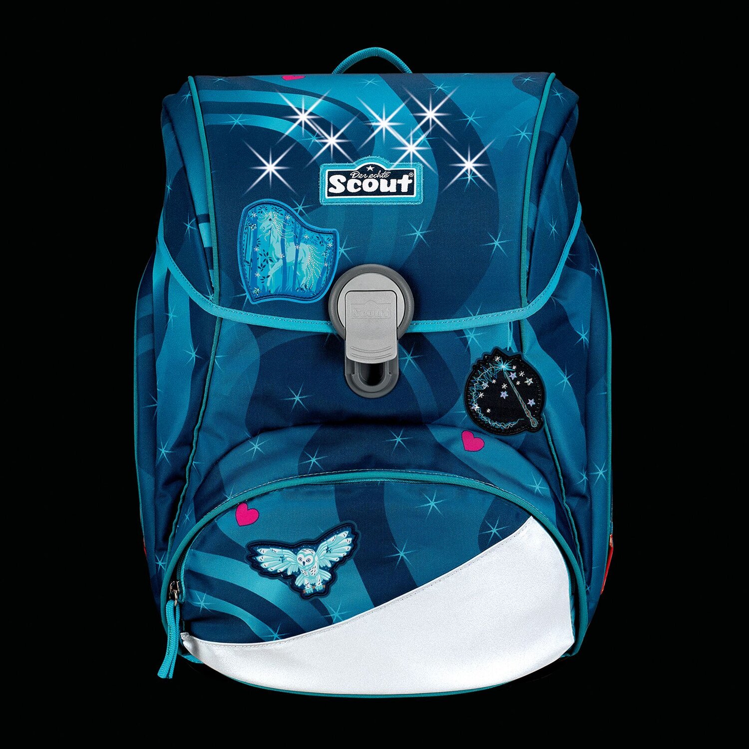 4-teiliges Schulranzen-Set von Scout, bestehend aus Schulranzen, Sporttasche mit Nassfach, Schlamper-Etui und 23-teiligem Schüleretui. Top-Tragekomfort durch die atmungsaktive Rückenpolsterung, höhenverstellbaren Gürte sowie Becken- und Brustgurt. Die moderne Rucksackform, feste Rahmenkonstruktion mit robusten Seitenelementen, der leichtgängiger Ein-Hand-Verschluss, Standfestigkeit und Kippsicherheit durch die große Stellfläche, außerdem eine Schutzleiste gegen eindringendes Nass - dass sind nur einige der vielen tollen Merkmale der neuen Scout Schultasche. Reflexmaterialien bieten eine sichere und optimale Lösung, wenn es um die Sichtbarkeit ihres Kindes geht. Schulranzen Außenmaß: 32 cm x 25 cm x 40 cm / Gewicht: ca. 1.200 g / Volumen: ca. 20,5 l