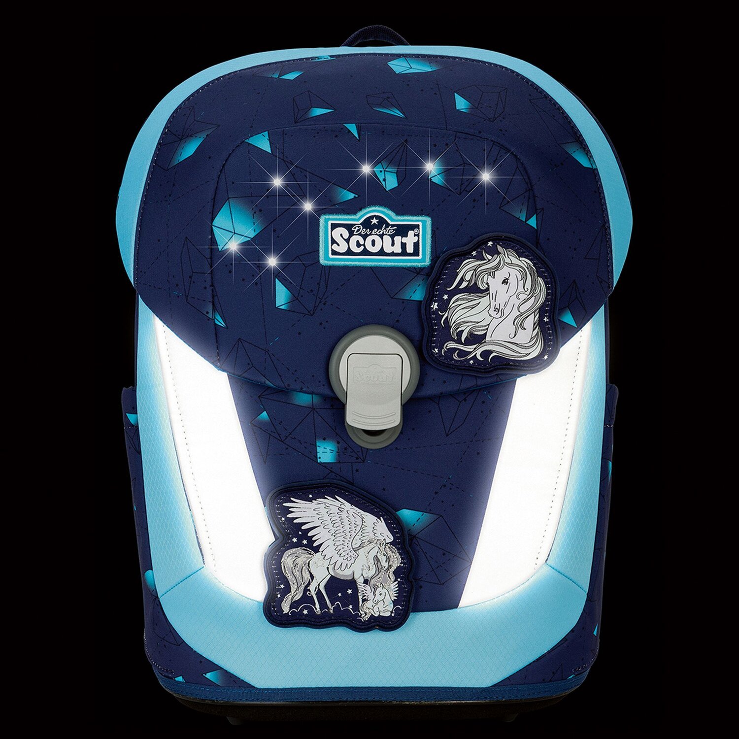 Der 4-teilige Schulranzen-Set von Scout, beinhaltet einen Schulranzen, eine Sporttasche, ein Schlamper-Etui und ein 23-teiliges Federmäppchen, sowie 3 Funny Snaps. Die Schulranzen der LED-Exklusiv-Kollektion verfügen über blinkende LED sowie Reflexmaterialien, die eine sichere und optimale Lösung bieten, wenn es um die Sichtbarkeit ihres Kindes geht. Für einen kraftsparenden Tragekomfort und einen optimales Sitz des Schulterbereichs in jeder Wachstumsphase gibt es ein höhenverstellbares Tragegurtsystem mit integriertem Hüftgurt. Dieses Tragegurtsystem passt sich dem wachsenden Kinderrücken sehr gut an. Schulranzen Außenmaß: 29 cm x 22 cm x 39 cm / Gewicht: ca. 1100 g / Volumen: ca.19,5 l