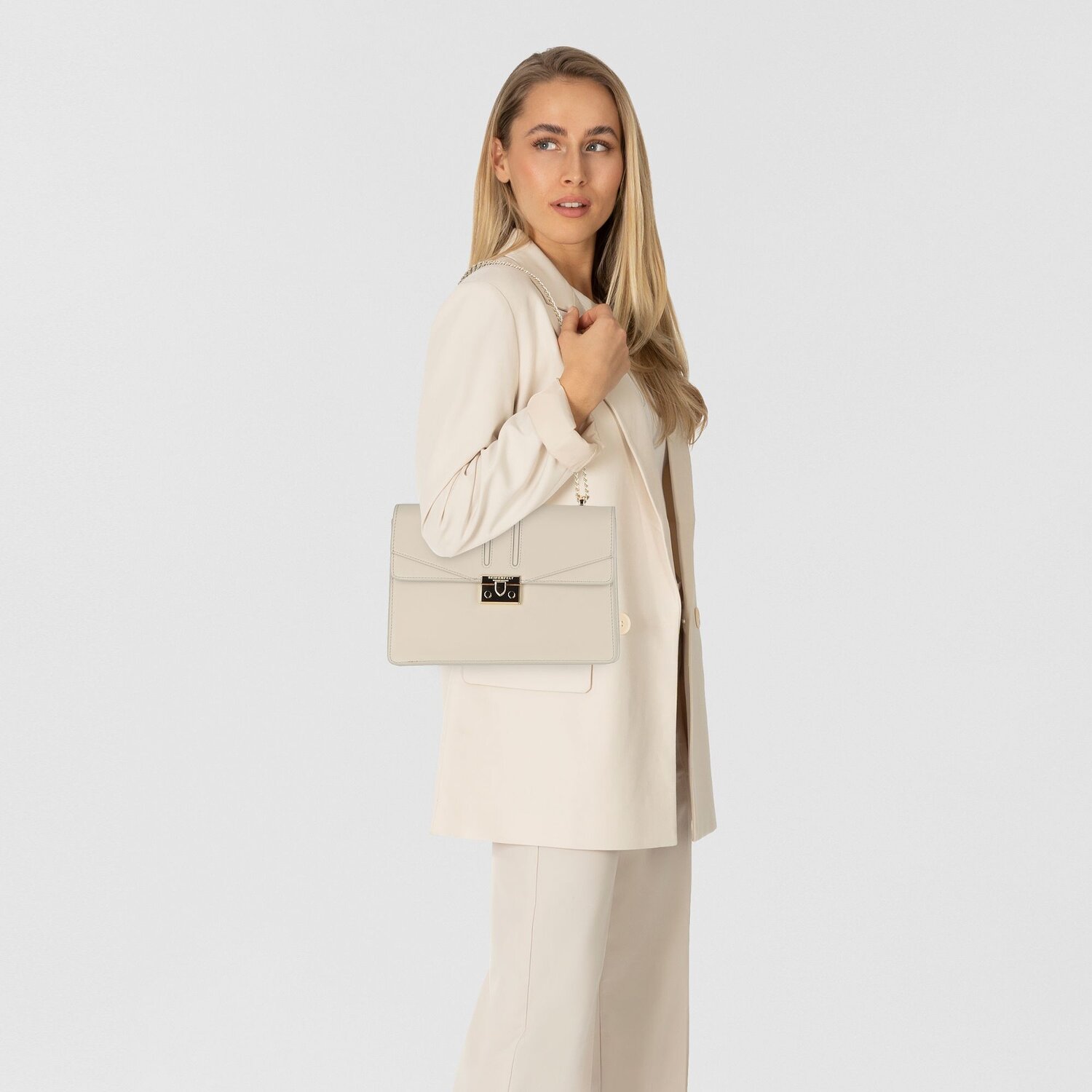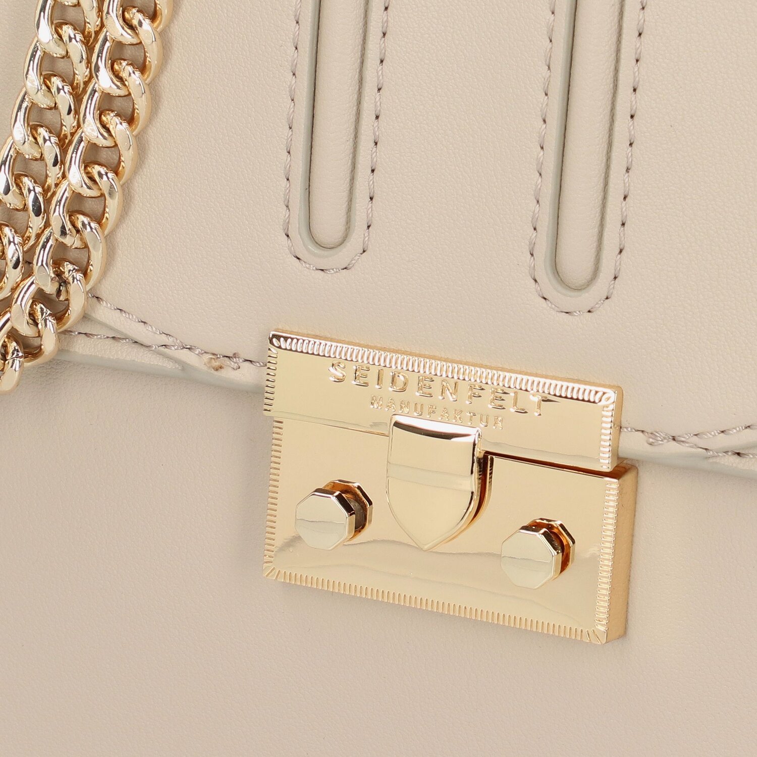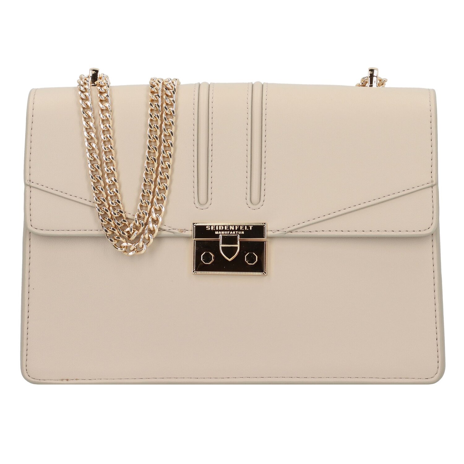 Schicke Umhängetasche aus der Seidenfelt Manufaktur, mit schönen Details und auffälligem Verschluss. Diese Tasche besticht durch ihre Form und die zarte Prägung ihrer Oberfläche. Ihr sind viele Blicke garantiert.