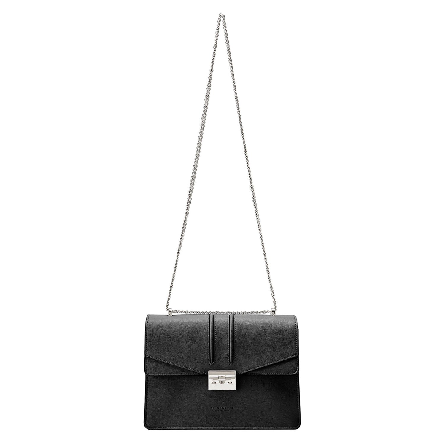 Schicke Umhängetasche aus der Seidenfelt Manufaktur, mit schönen Details und auffälligem Verschluss. Diese Tasche besticht durch ihre Form und die zarte Prägung ihrer Oberfläche. Ihr sind viele Blicke garantiert.