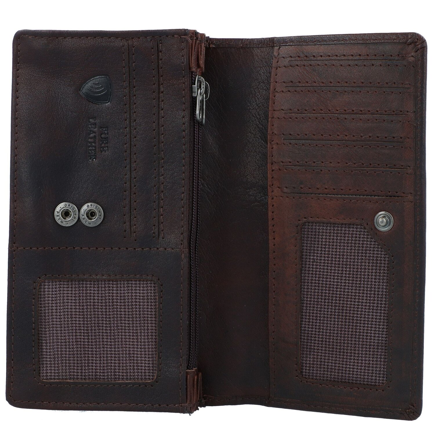 Hochwertig verarbeitete Geldbörse von Spikes & Sparrow mit Druckknopfverschluss aus weichem Leder mit vielen Kartenfächern, zwei Münzfächern und weiteren Fächern für einen optimalen Überblick.