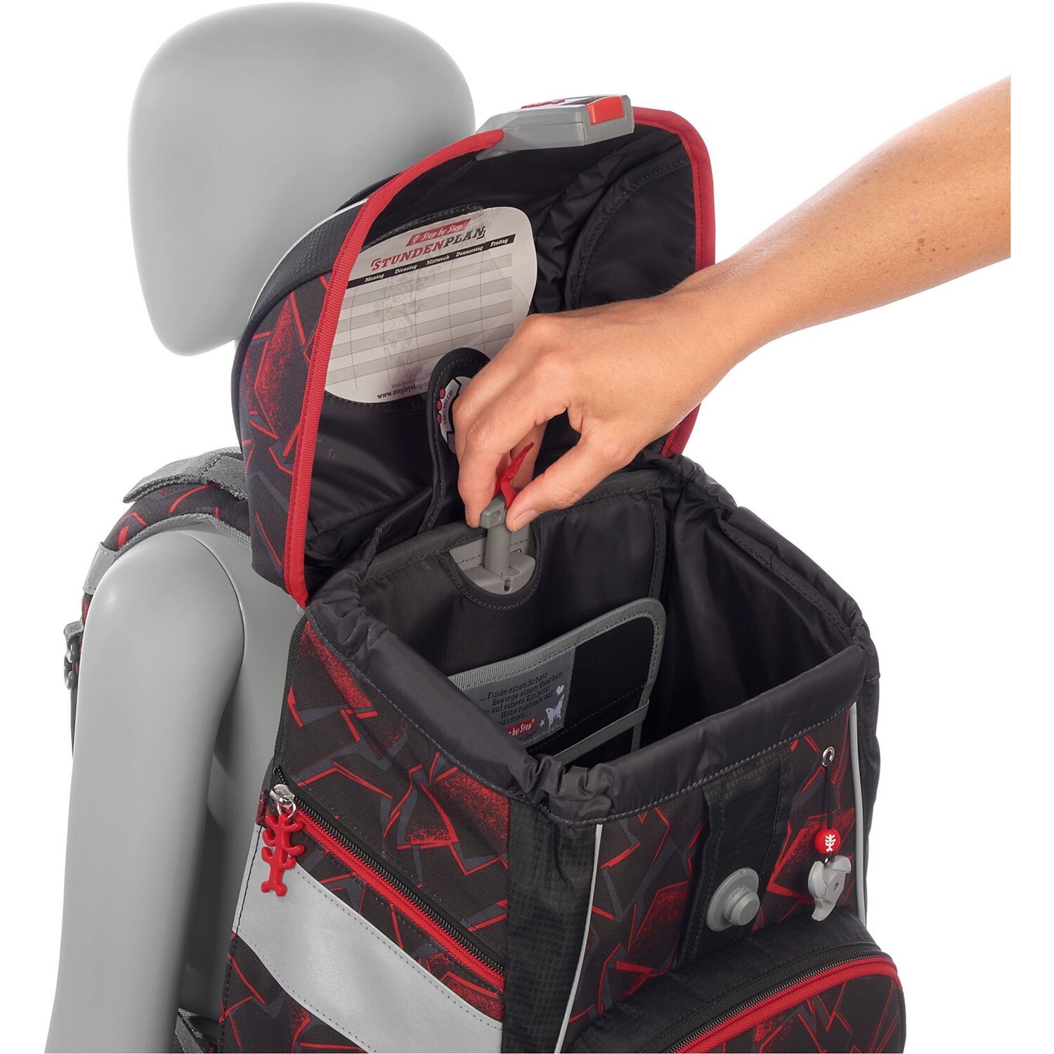 Ihr Kind wächst und seine Bedürfnisse verändern sich - der 2in1 kann da mithalten: im Handumdrehen verwandelt sich der Schulranzen in einen tollen Rucksack. Herausnehmbarer Stundenplan im Deckel, Namensschild in der Vordertasche, eine ergonomisch geformte Rückenpartie mit weicher, imprägnierter Polsterung und Belüftungsrillen, gepolsterte Tragegurte mit Reflexstreifen für zusätzliche Sicherheit, verstellbare Gurte mit Gurtenden-Einhängung zur Entlastung der Schultern und Trageunterstützung - das sind nur ein paar der tollen Features des 2in1. Für die individuelle Gestaltung können je nach Geschmack des Kindes Magic Mags Motive hinzugefügt oder ausgetauscht werden. Set bestehend aus: - Schulranzen - Federmäppchen - Schlamperetui - Sportbeutel - Schablonen - Magic Mags. Schulranzen Außenmaß: 28 cm x 20 cm x 37,5 cm / Gewicht: ca. 1200 g / Volumen: ca. 19 l