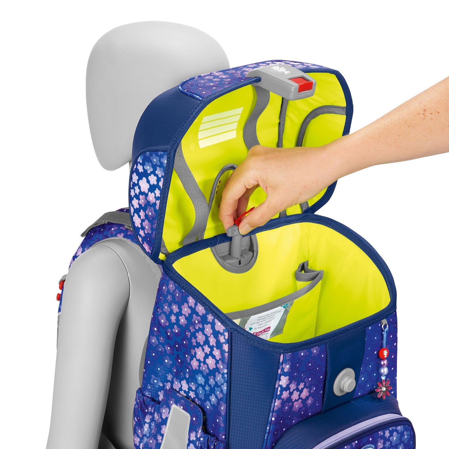 Der Cloud begeistert durch besonders leichtes Material und das höhenverstellbare Tragesystem, das sich Ihrem wachsenden Kind anpassen kann. Die ergonomische Rückenpartie, das Rückenpolster, sowie Hüftflosse, Brustgurt und Lageverstellriemen sorgen für ein optimales Trageerlebnis. Für die individuelle Gestaltung können Magic Mags, ganz nach dem Geschmack Ihres Kindes, angebracht werden. Im geräumigen Hauptfach gibt es jede Menge Platz für alles, was im Unterricht gebraucht wird, zusätzlich können die zwei Seitentaschen nach außen wachsen und so im Inneren für genügend Stauraum sorgen. Das Set besteht aus: Schulranzen, Federmäppchen (komplett bestückt mit Markenstiften), Schlamperetui, Sportbeutel und 3-teiligem Magic Mags Set. Schulranzen Außenmaß: 28 cm x 20 cm x 37,5 cm / Gewicht: ca. 990 g / Volumen: ca. 19 l